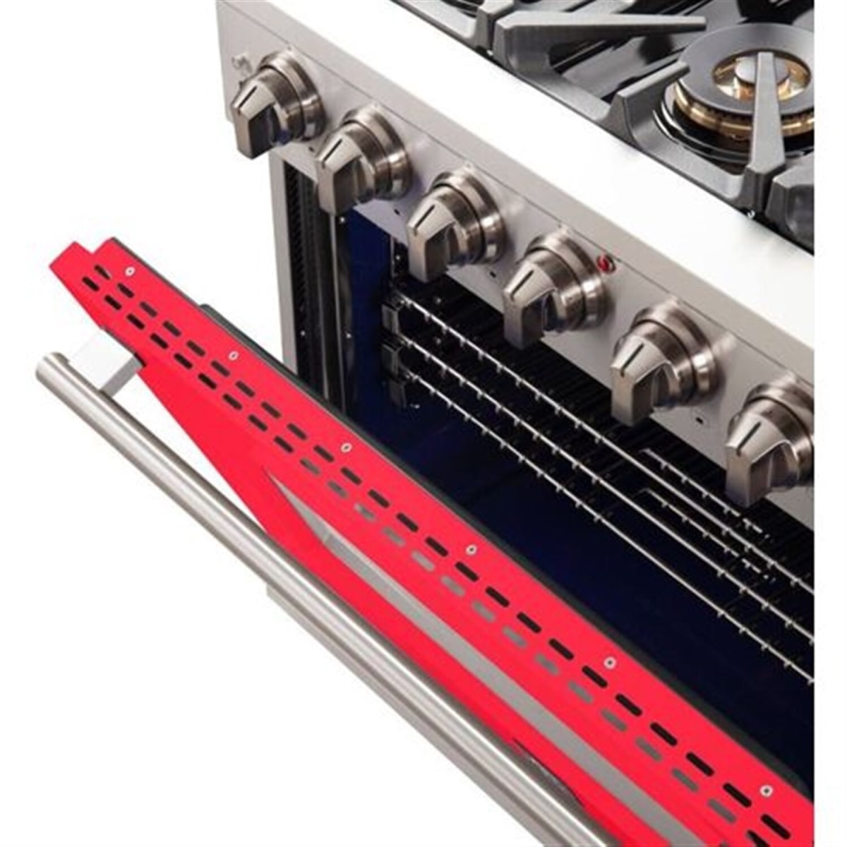 Design with interchangeable colored range doors available for most FORNO range models. Oven Door has triple pane glass for heat insulation. Complete your door assembly with inner and outer door with hinges.