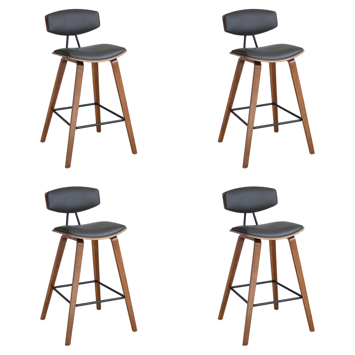 Fox - 28.5" Bar Height Mid-Century Modern Bar Stool (Set of 4) - Gray Faux Leather And Walnut Wood