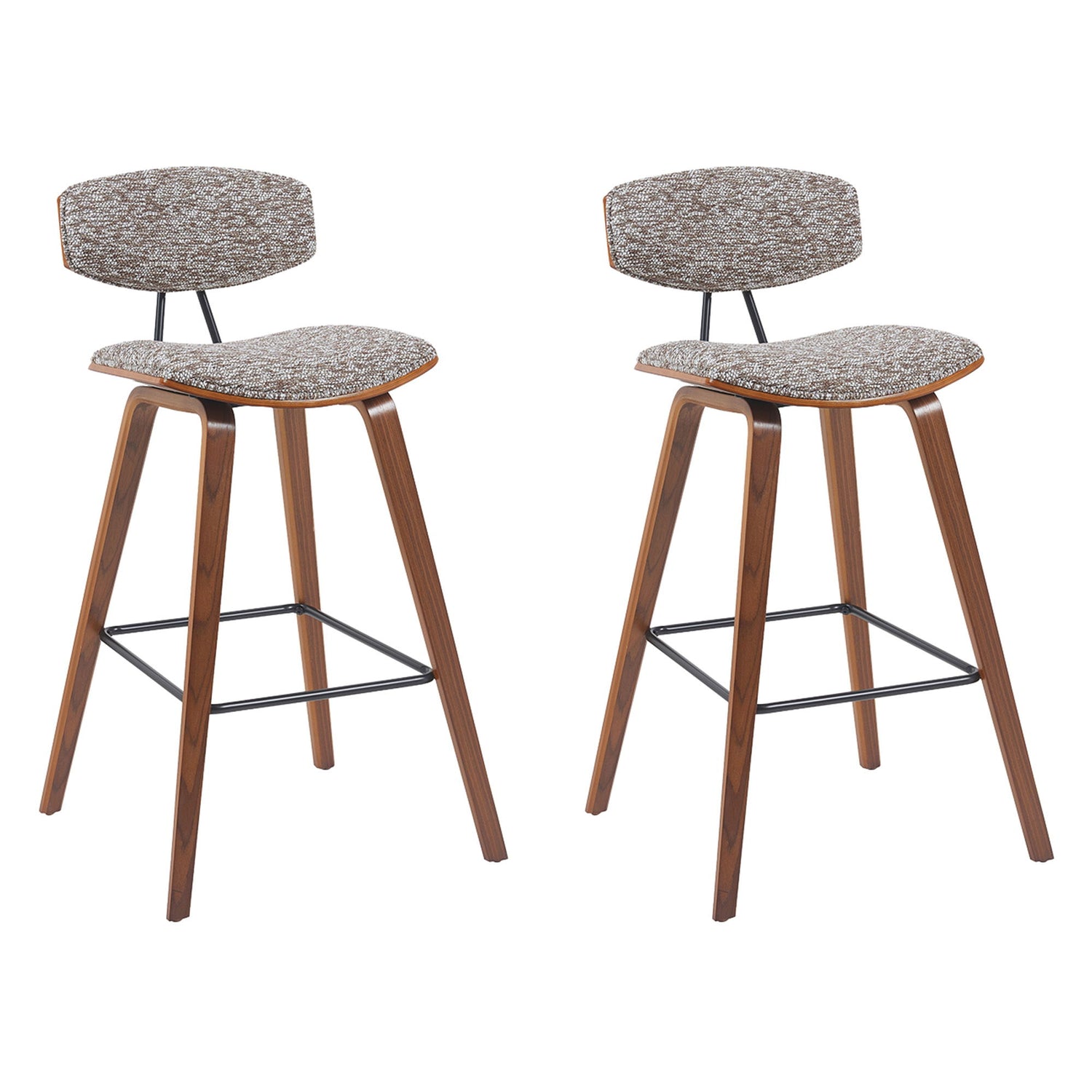Fox - Modern Swivel Bar Height Stool (Set of 2) - Speckled Brown Upholstered Seat And Walnut Wood Frame