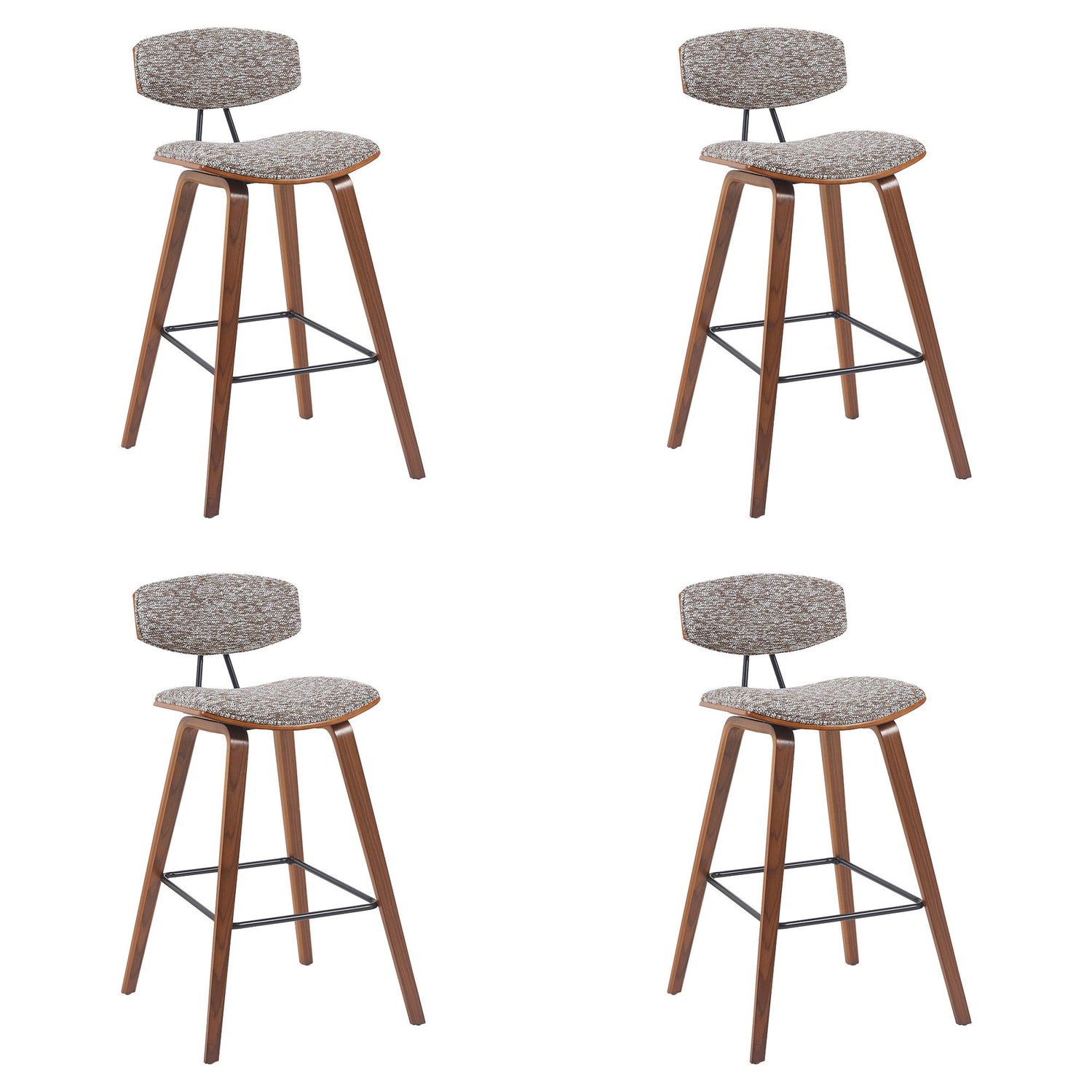 Fox - Modern Swivel Bar Height Stool (Set of 4) - Speckled Brown Upholstered Seat And Walnut Wood Frame