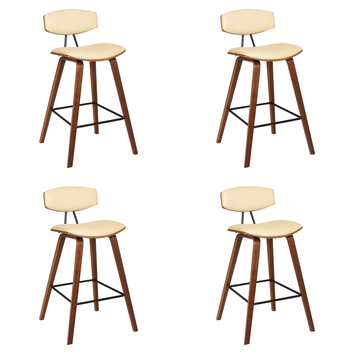 Fox - 28.5" Bar Height Mid-Century Modern Bar Stool (Set of 4) - Cream Faux Leather And Walnut Wood