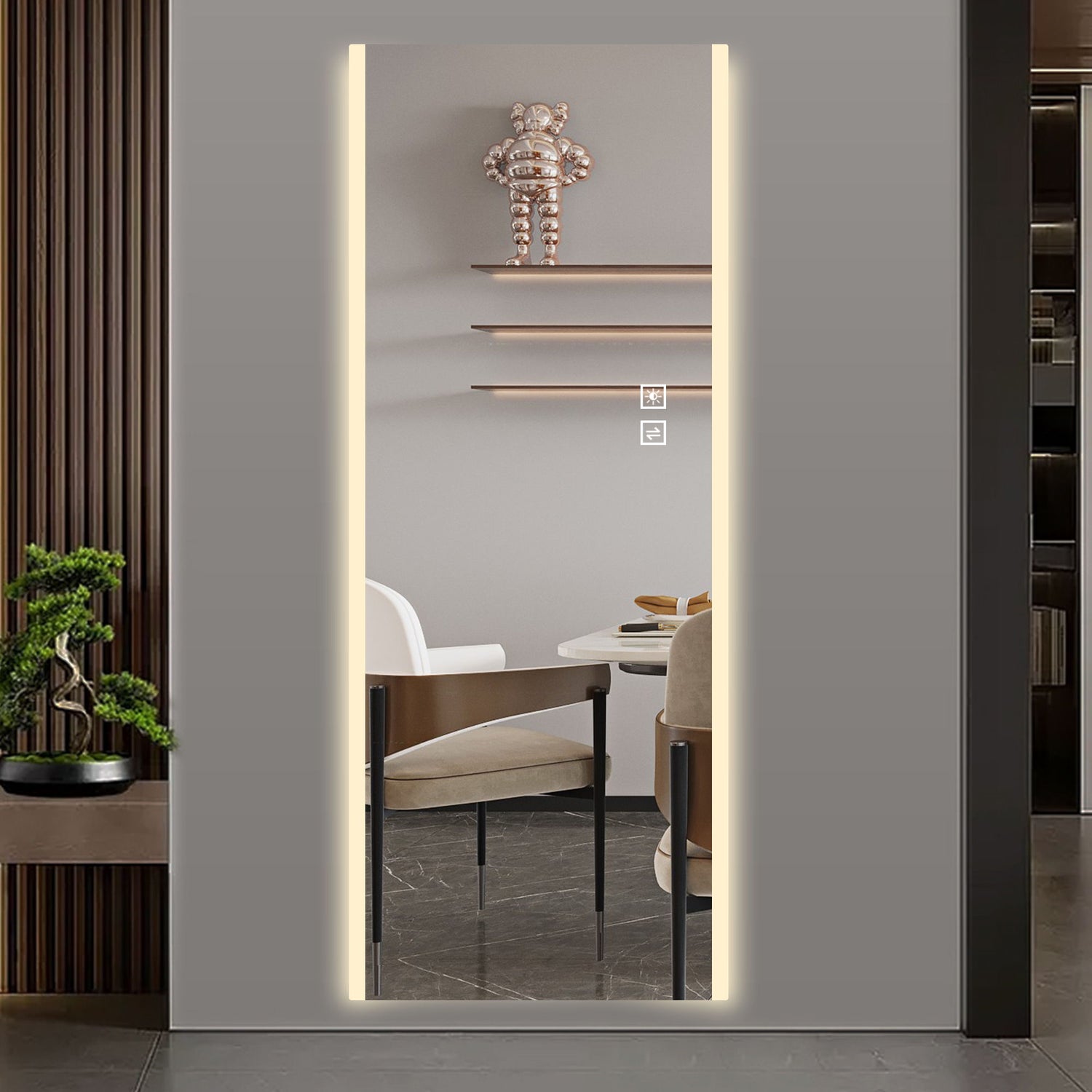 Frameless Full Length LED Mirror With 3 Color Changing Light And Explosion Proof Glass - Silver