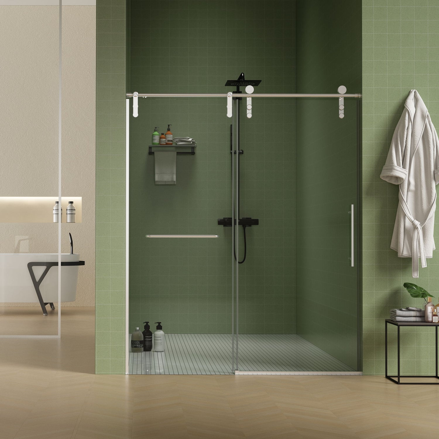 Frameless Shower Door, Sliding Shower Door, Premium 5 / 16" (8Mm) Thick Tempered Glass Shower Enclosure With Towel Bar, Double Side Easy Clean Coat, Finished With Buffer - Brushed Nickel