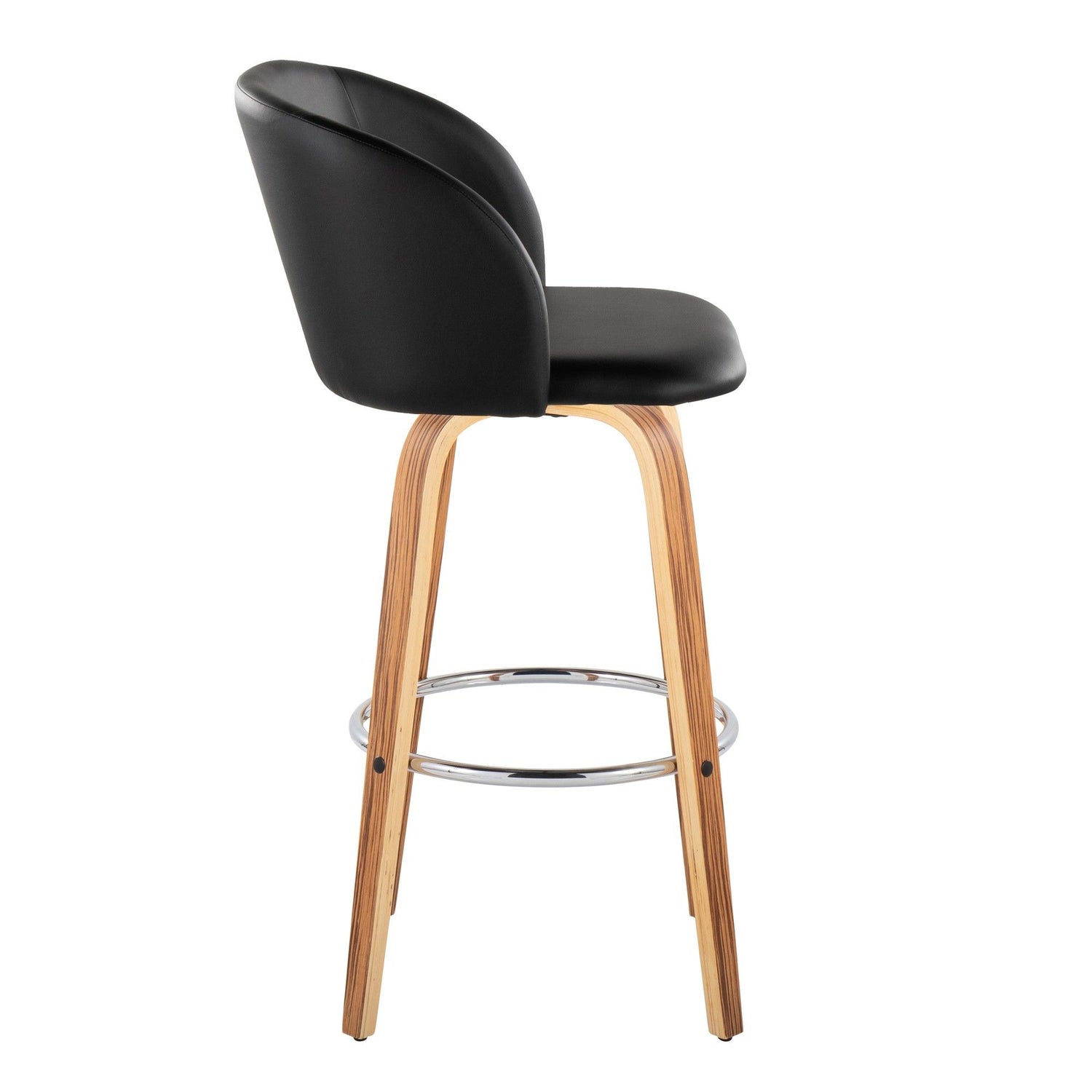 Fran - Fixed-Height Barstool (Set of 2) - Zebra Wood, Black Faux Leather, Chrome Metal