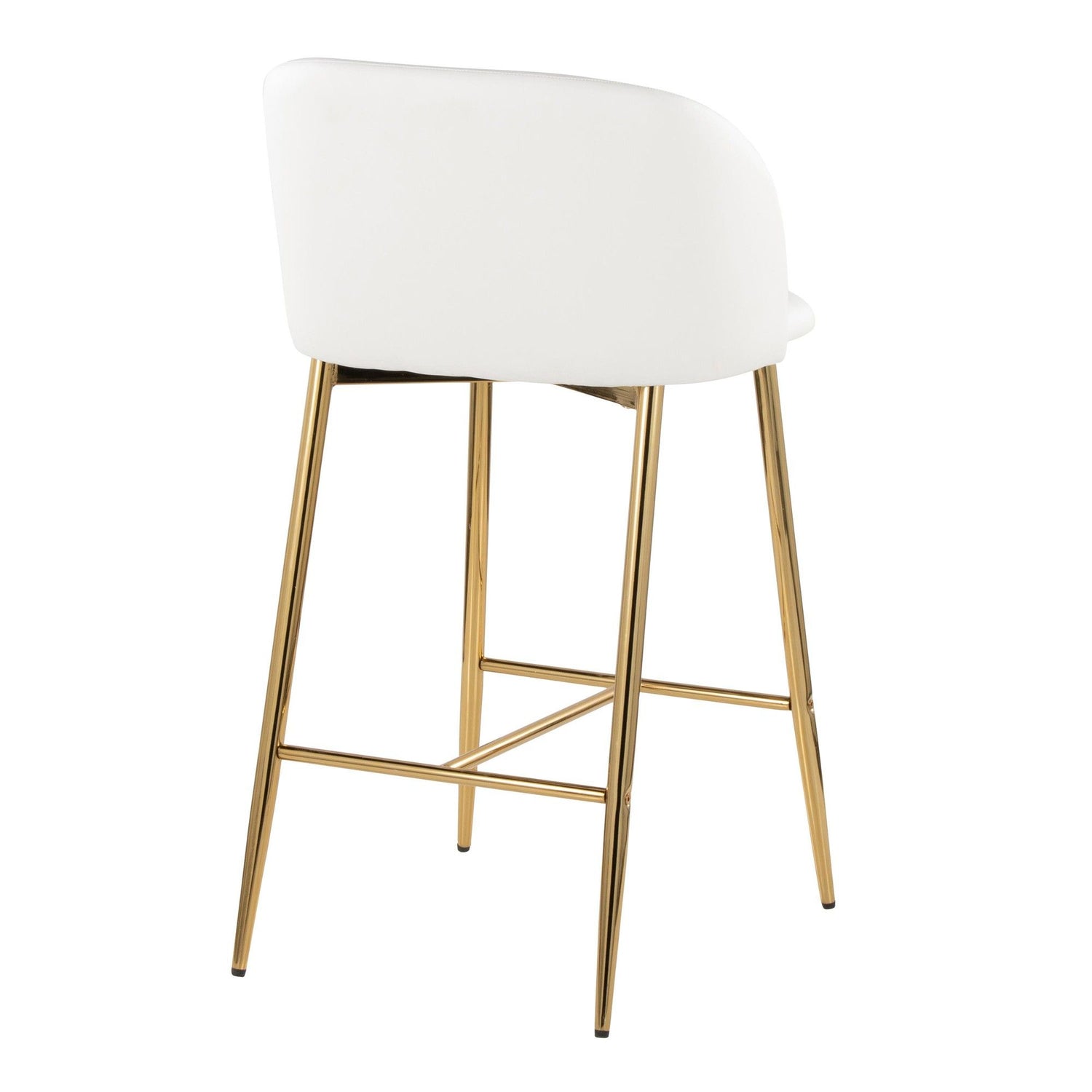 Fran - Fixed-Height Counter Stool (Set of 2) - Gold Metal, White Faux Leather