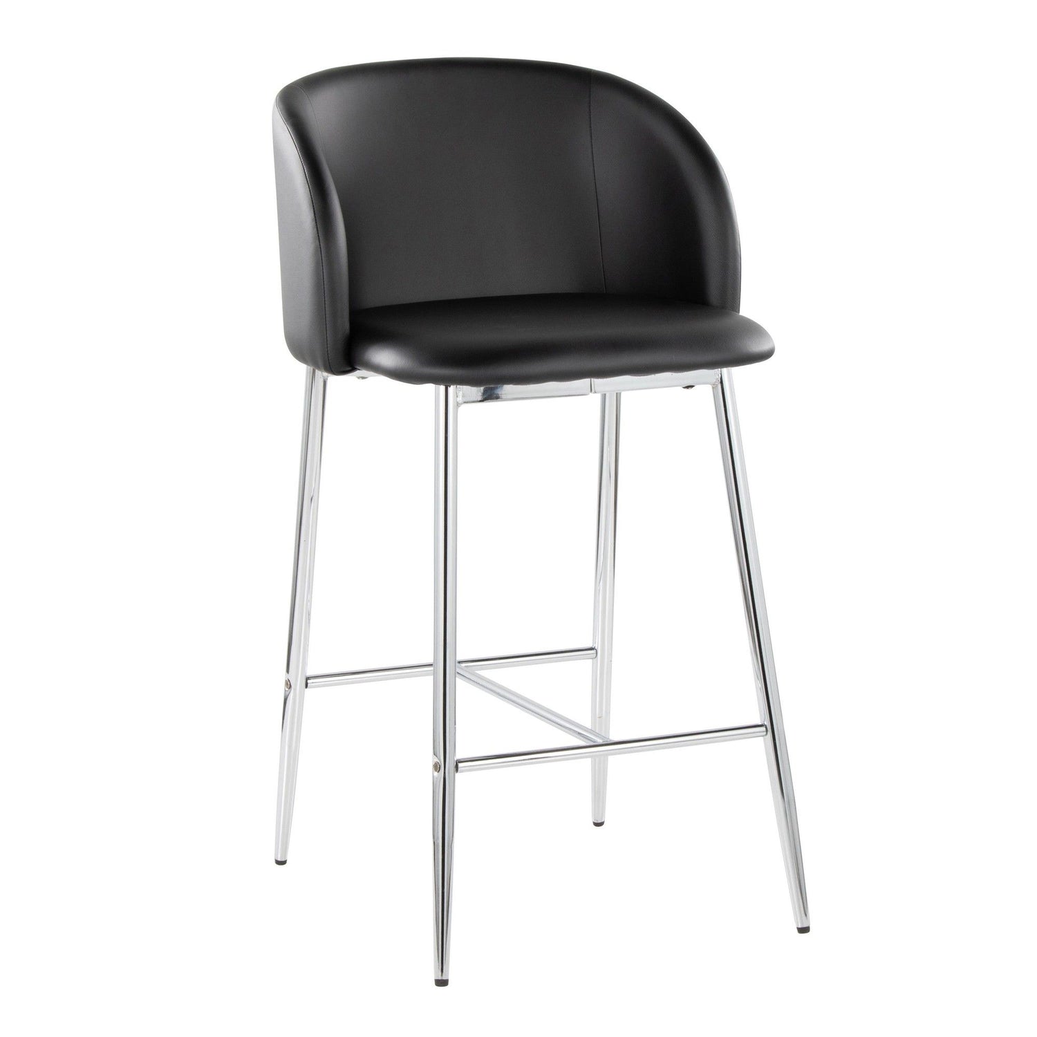 Fran - Fixed-Height Counter Stool (Set of 2) - Silver Metal, Black Faux Leather