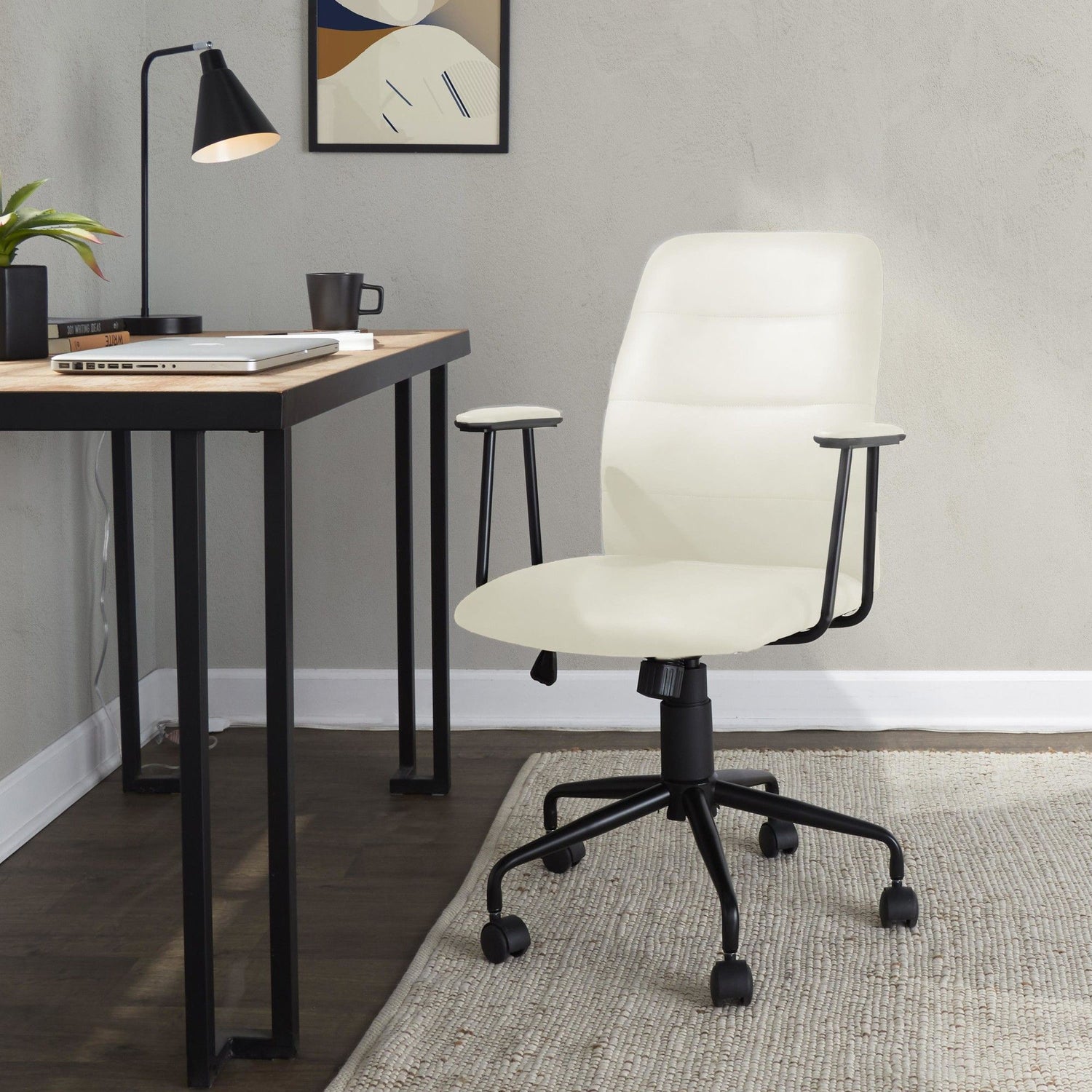Fredrick - Office Chair - Black Metal, Cream Faux Leather