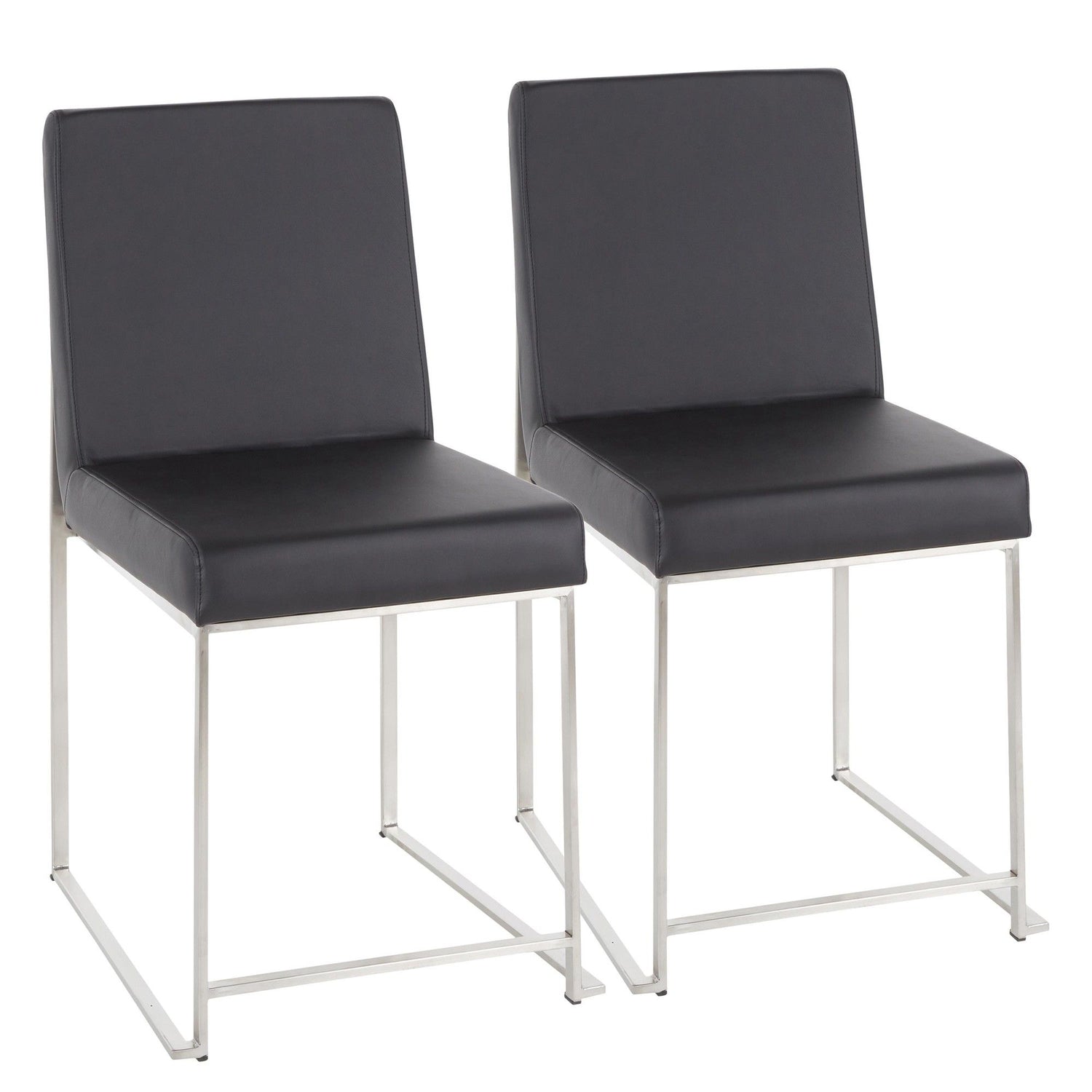 Fuji - High Back Dining Chair (Set of 2) - Stainless Steel And Black Faux Leather