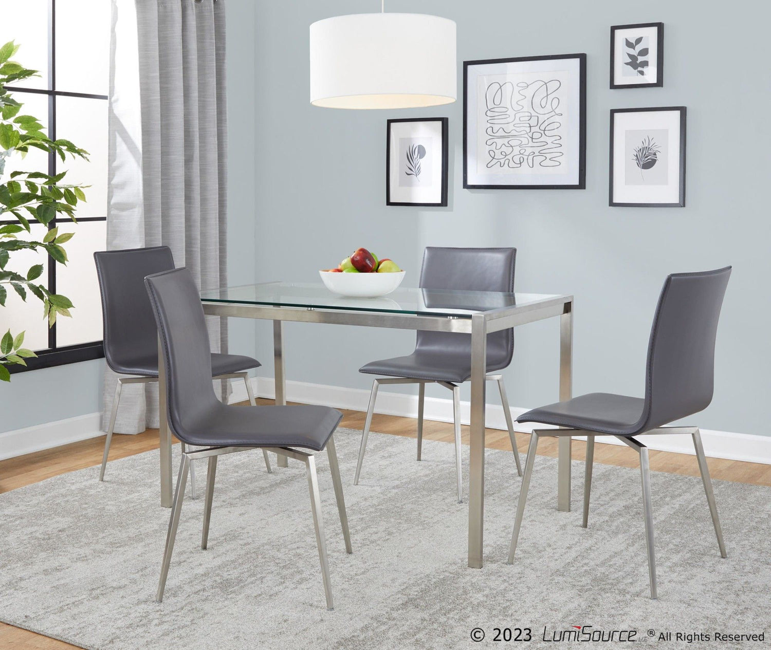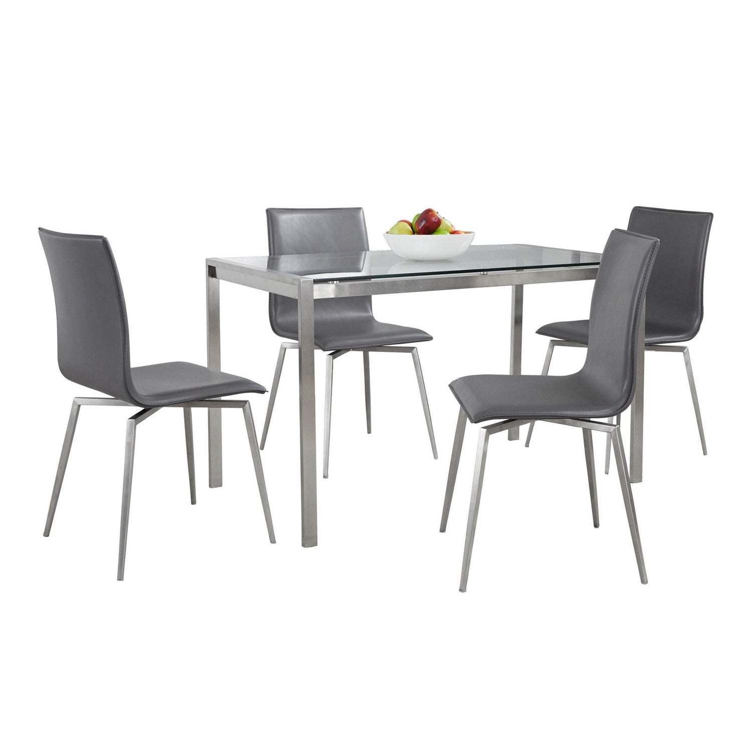 Fuji - Mason 5 Piece Upholstered Swivel Dining Set - Brushed Stainless Steel, Clear Glass, Gray Faux Leather