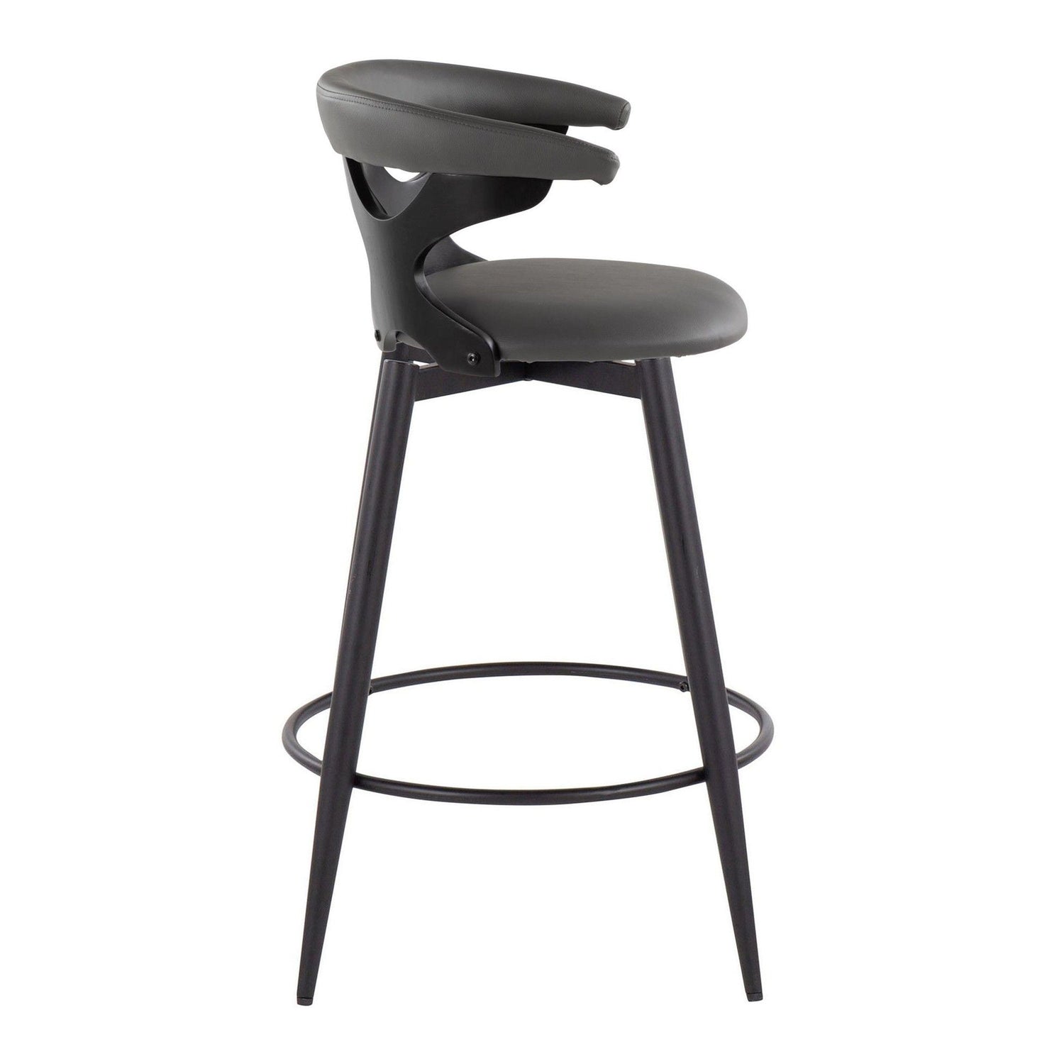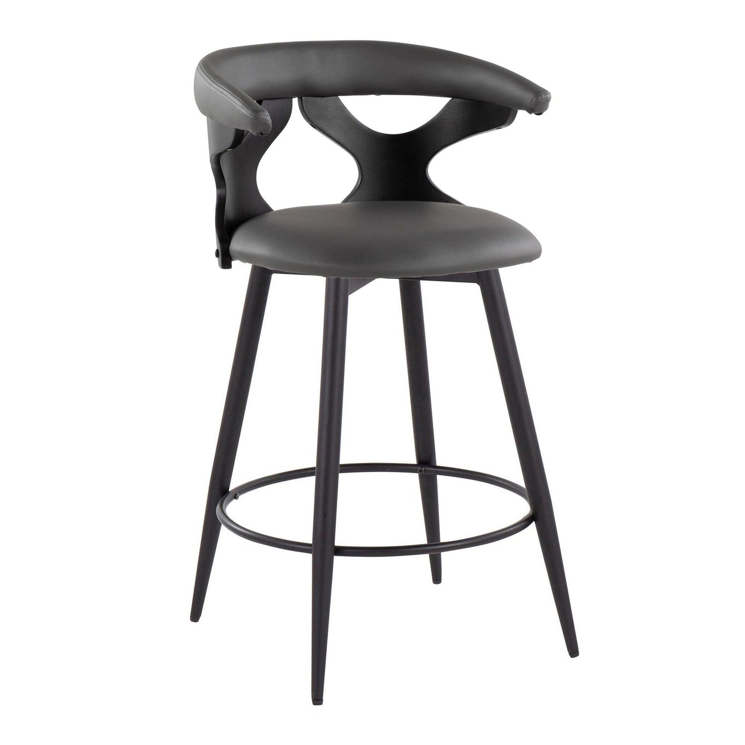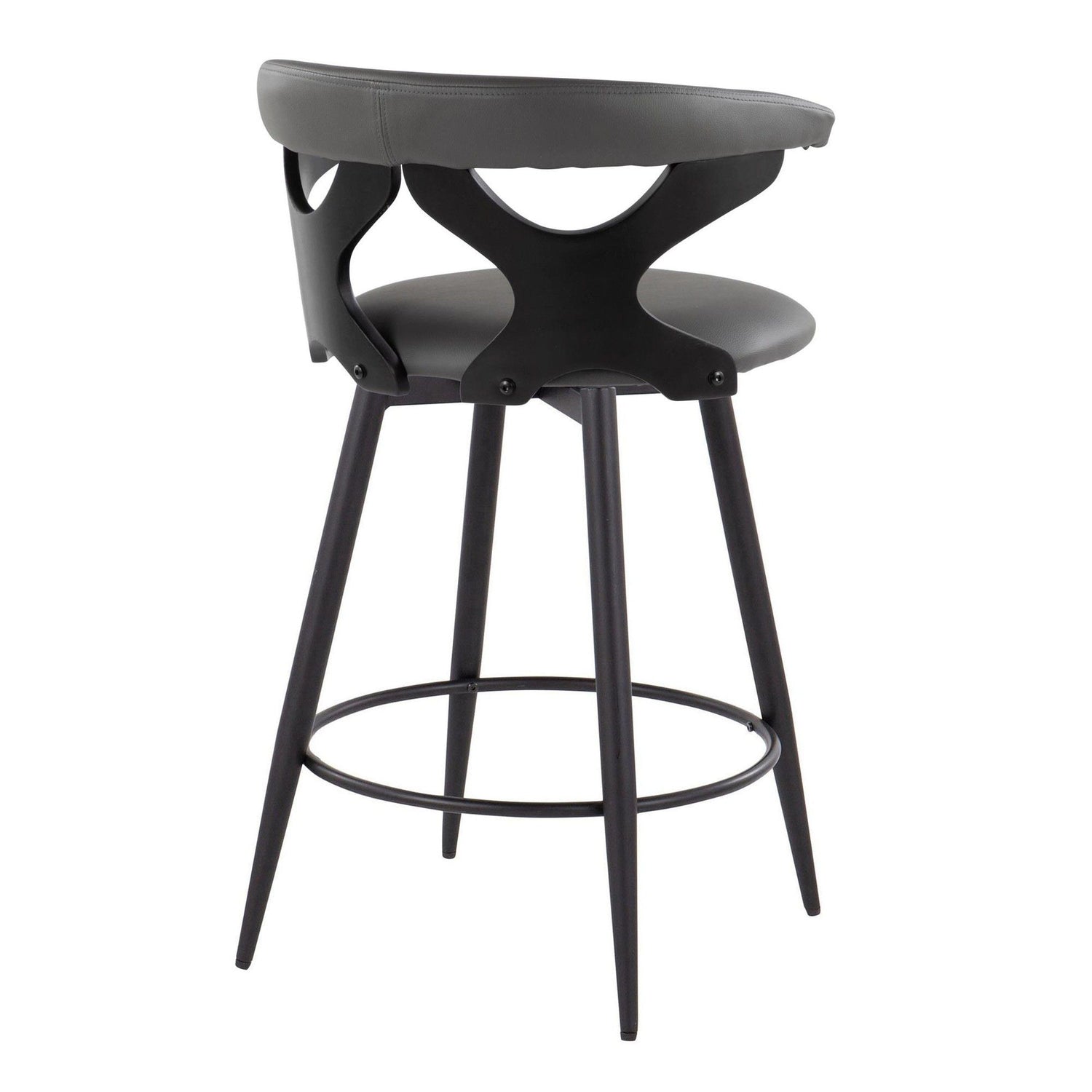 Gardenia - 25" Fixed-Height Counter Stool With Swivel And Rounded Black Metal Footrest (Set of 2) - Black Metal, Black Wood And Gray Faux Leather