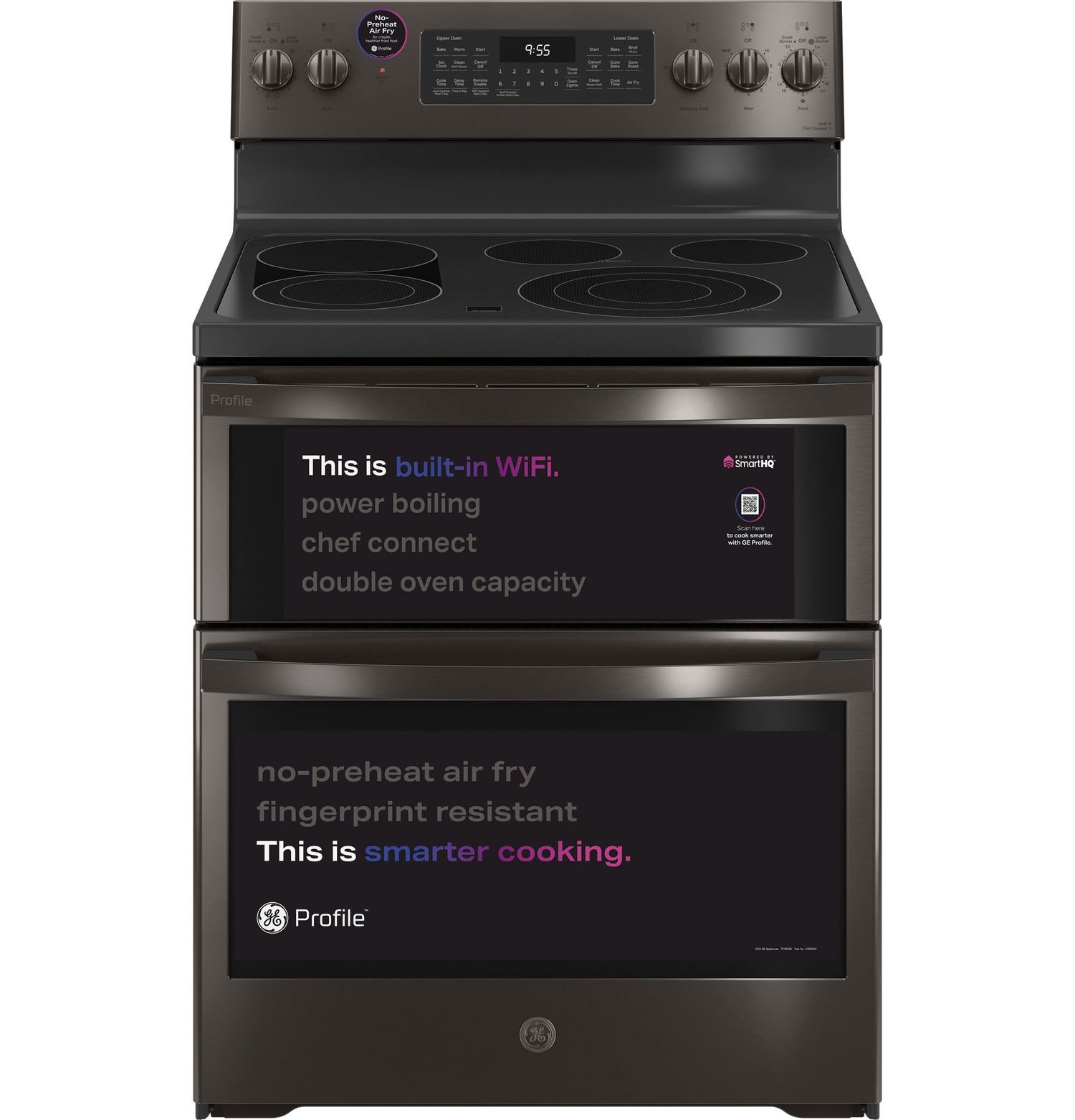 (BR)(B)No Preheat Air Fry(/B)(P)Cook healthier, crispier versions of your favorite foods in less time, thanks to an air fryer right in your oven that doesn't require preheating, a basket or a special tray(/P)(BR)(B)Built-In WiFi, Powered by SmartHQ App(/B)(P)Connect, control and manage your oven from anywhere with your smartphone or tablet (Select features require WiFi Connection) See details(/P)(BR)(B)GE Profile Connect +(/B)(P)Ensure your oven always has the latest features, like new Air Fry modes, with downloadable software upgrades(/P)(BR)(B)Fingerprint resistant stainless(/B)(P)Easily wipe away smudges and fingerprints for a look that's always sparkling clean(/P)(BR)(B)12"/ 9"/6" Power boil element(/B)(P)A power boiler produces concentrated heat for rapid boiling in a flexible 12-inch/9-inch/6-inch burner size, so you spend less time waiting and more time cooking(/P)(BR)(B)8"/5" Dual element(/B)(P)A dual burner cooktop lets you choose between 8-inch and 5-inch electric elements fo