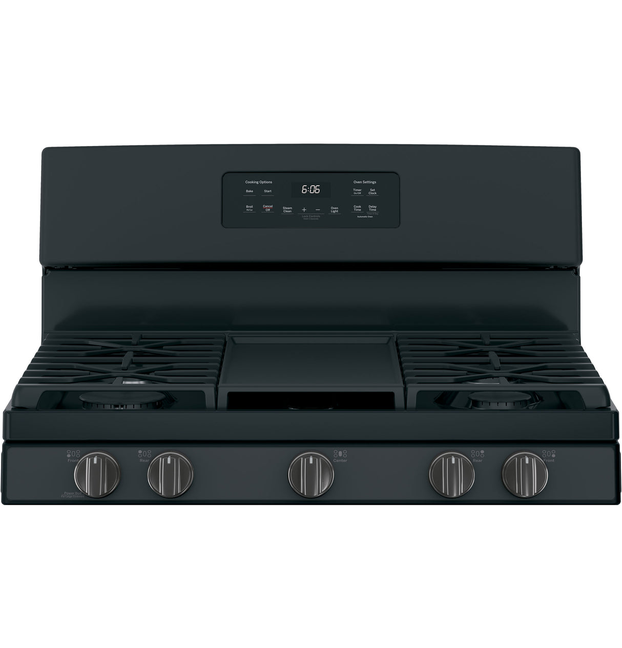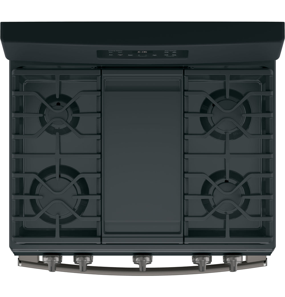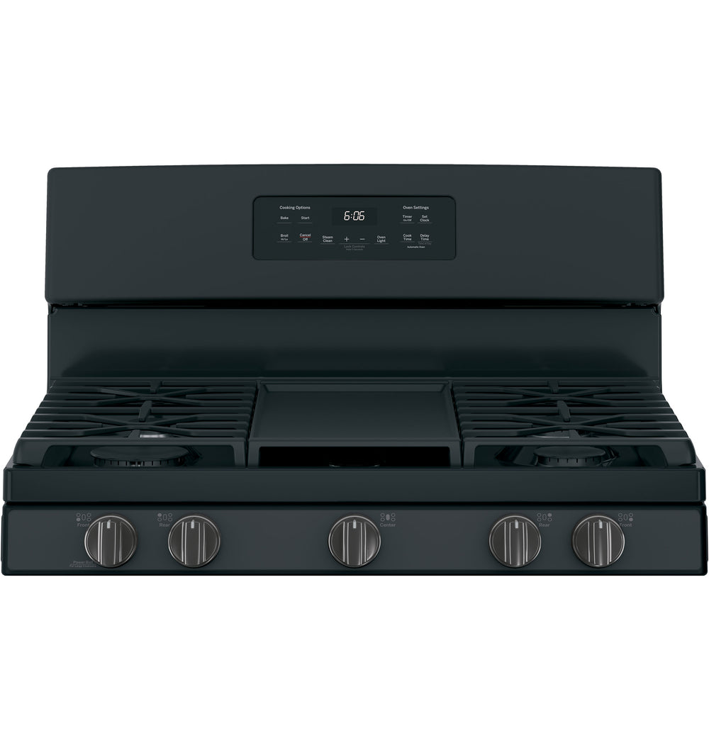 (BR)(B)Edge-to-edge cooktop(/B)(P)A large cooking surface gives you extra room for pots and pans of all sizes and lets cookware move easily from burner to burner(/P)(BR)(B)Extra-large integrated non-stick griddle(/B)(P)Cook up to six grilled cheeses at once on the industry's largest integrated griddle(/P)(BR)(B)15,000 BTU Power Boil Burner(/B)(P)Delivers high heat for fast boiling(/P)(BR)(B)Center oval burner(/B)(P)Large oval fifth burner is ideal for griddle cooking(/P)(BR)(B)Steam clean(/B)(P)Save time and effort by steam-cleaning the oven after cooking. No special water, kits or extra steps required.(/P)(BR)(B)Precise Simmer burner(/B)(P)Delicate foods don't burn with low, even heat(/P)(BR)(B)Heavy duty, dishwasher-safe grates(/B)(P)Easily and safely clean grates in the dishwasher(/P)(BR)(B)5.0 cu. ft. oven capacity(/B)(P)Cook more dishes at once(/P)(BR)(B)Sealed cooktop burners(/B)(P)Contains spills and make cleaning quick and easy(/P)(BR)(B)Deep-recessed cooktop(/B)(P)Contains spi
