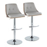 Gianna - Mid-Century Modern Adjustable Barstool With Swivel With Rounded T Footrest (Set of 2) - Chrome / Walnut / Light Gray