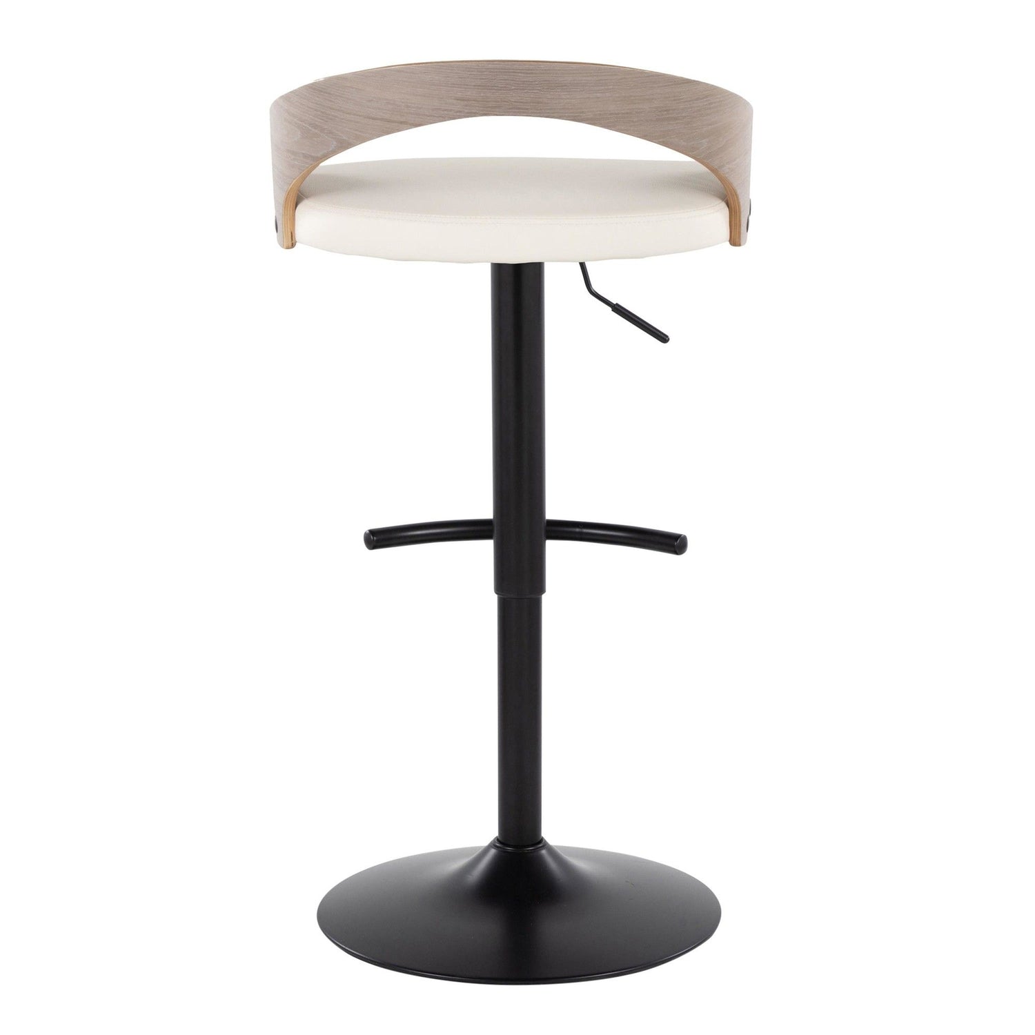 Grotto - Adjustable Barstool - Black Metal, Light Gray Wood, White Faux Leather