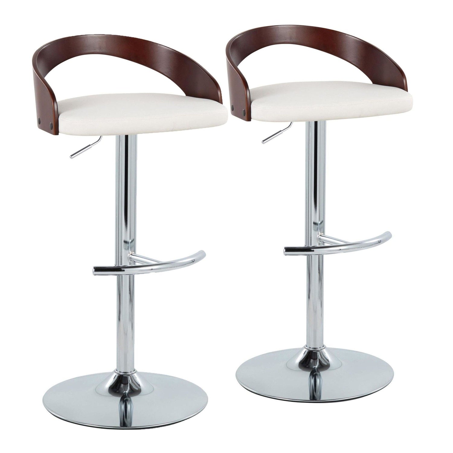 Grotto - Adjustable Barstool - Chrome Metal, Mahogany Wood - White / 2 Pieces is backordered and will ship as soon as it is back in stock.