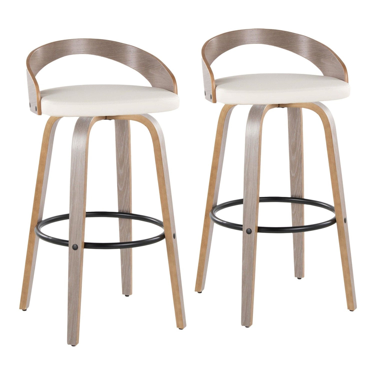 Grotto - Fixed-Height Barstool (Set of 2) - Light Gray Wood, Black Metal, White Faux Leather
