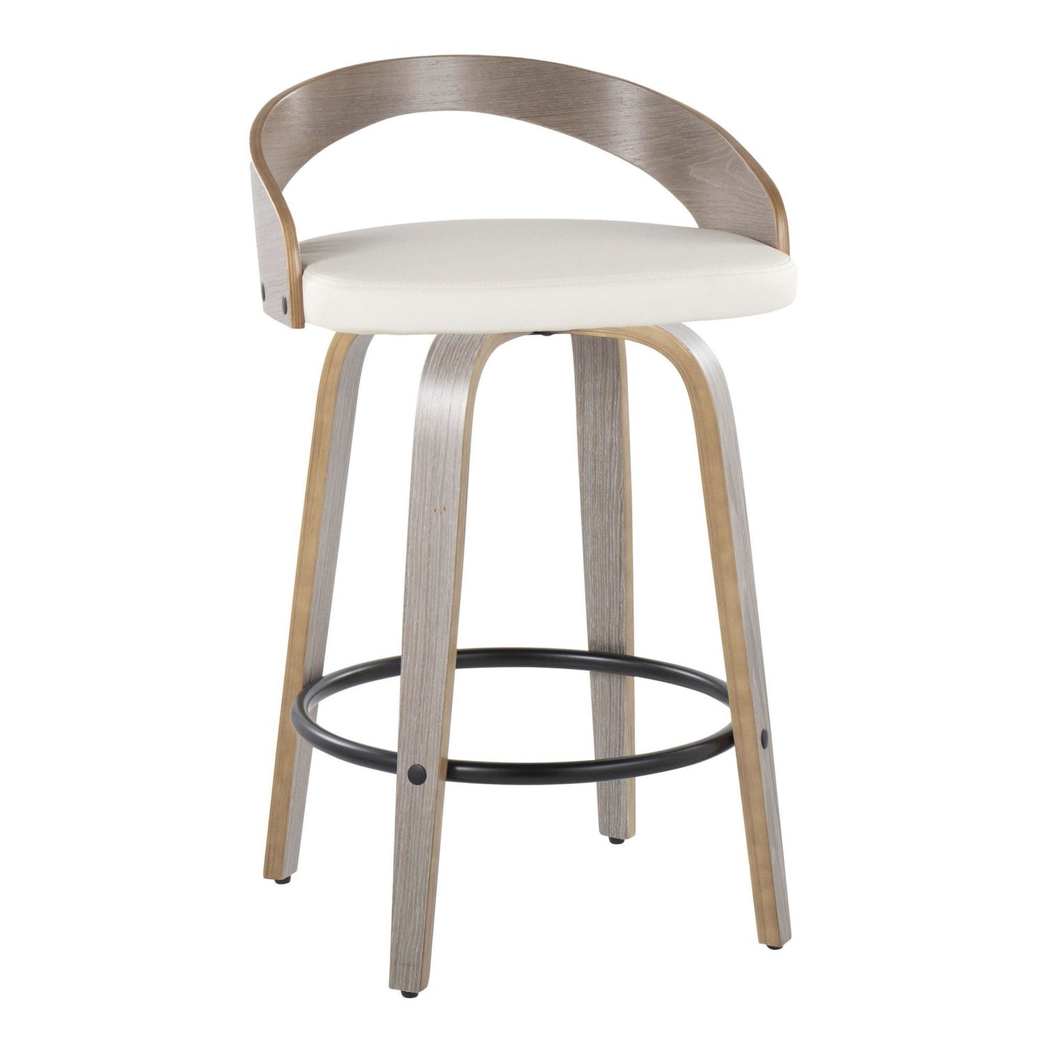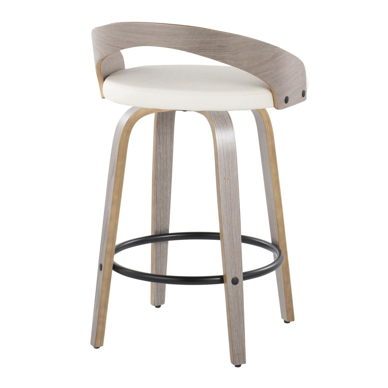 Grotto - Fixed-Height Counter Stool (Set of 2) - Light Gray Wood, White Faux Leather, Black Metal