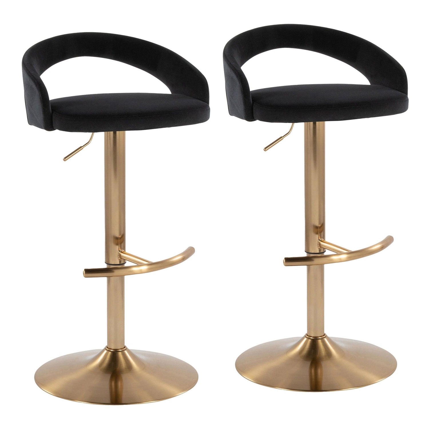 Grotto - Upholstered Adjustable Barstool (Set of 2) - Gold Metal, Black Velvet