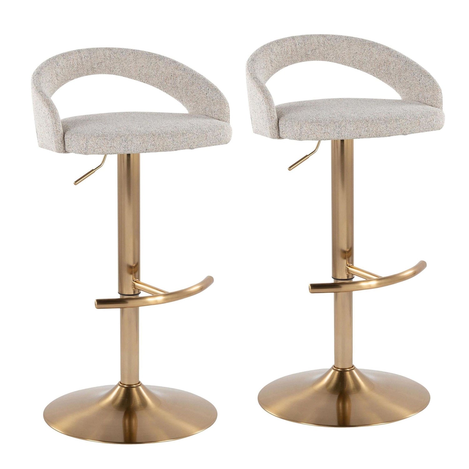Grotto - Upholstered Adjustable Barstool (Set of 2) - Gold Metal, Oat Noise Fabric