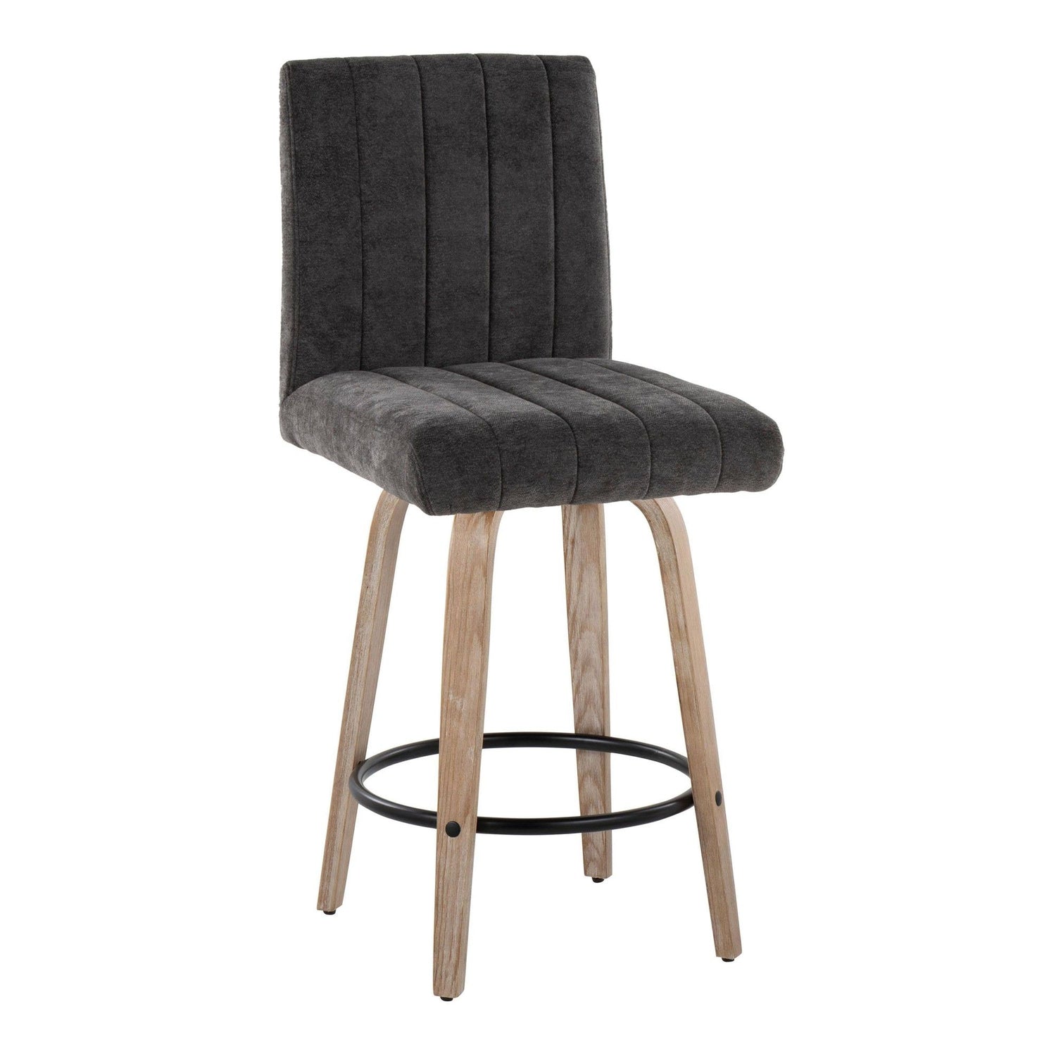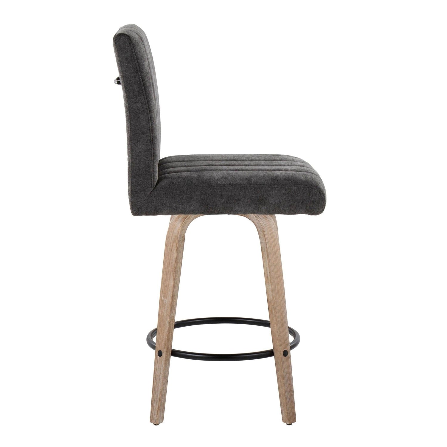 Hannah - 26" Fixed-Height Counter Stool With Swivel And Round Black Metal Footrest (Set of 2) - Whitewashed Wood And Black Fabric