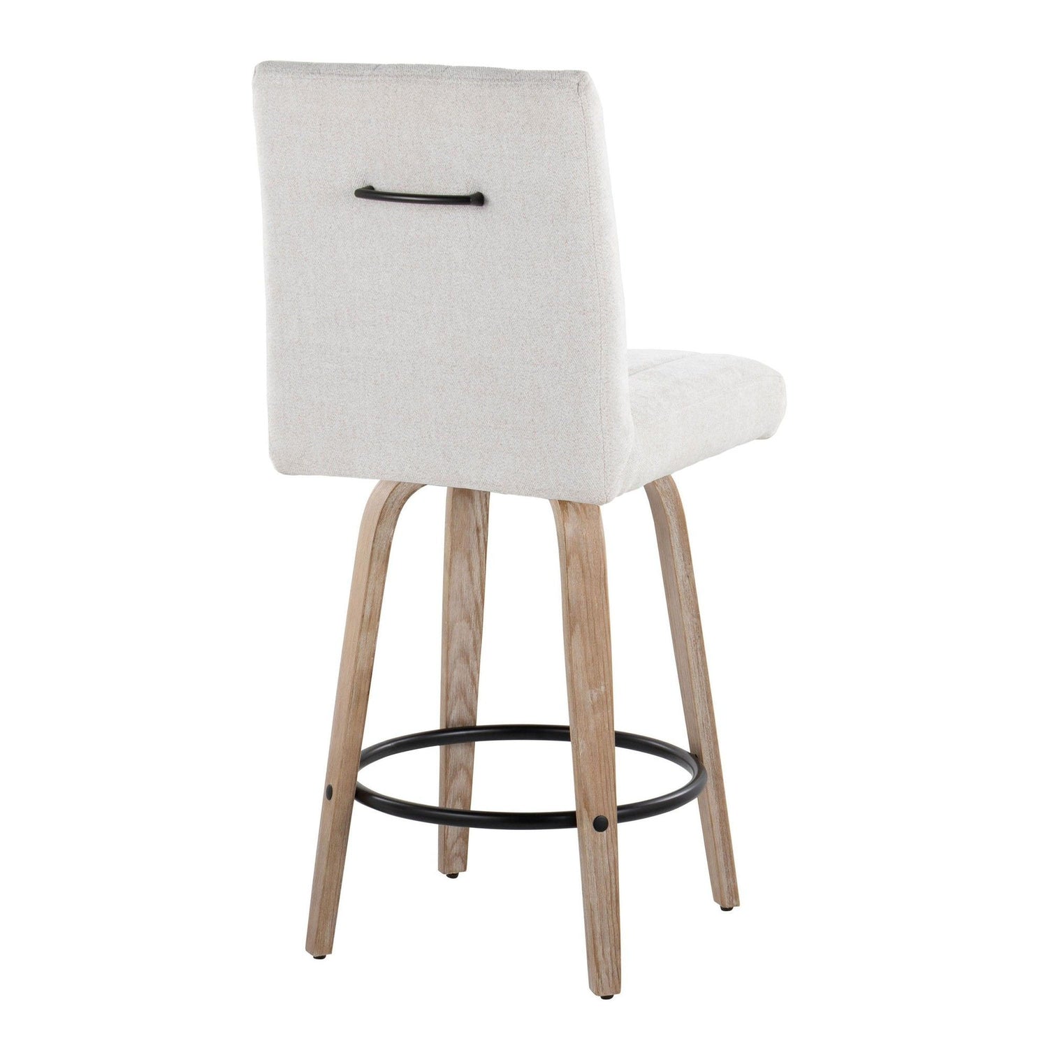 Hannah - 26" Fixed-Height Counter Stool With Swivel And Round Black Metal Footrest (Set of 2) - Whitewashed Wood