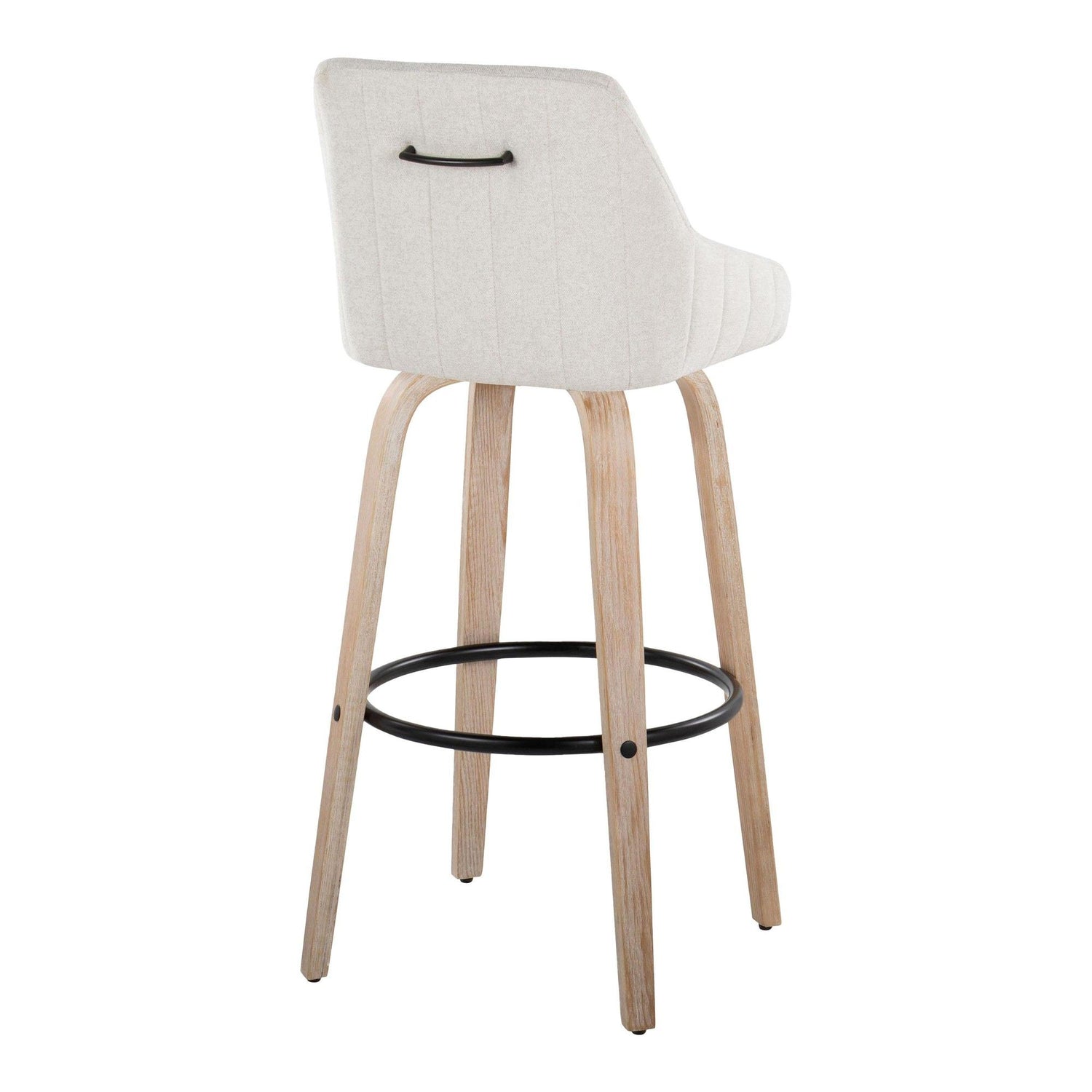 Hannah - 30" Fixed-Height Barstool With Swivel (Set of 2) - Whitewashed Wood And Cream Fabric With Round Black Metal Footrest