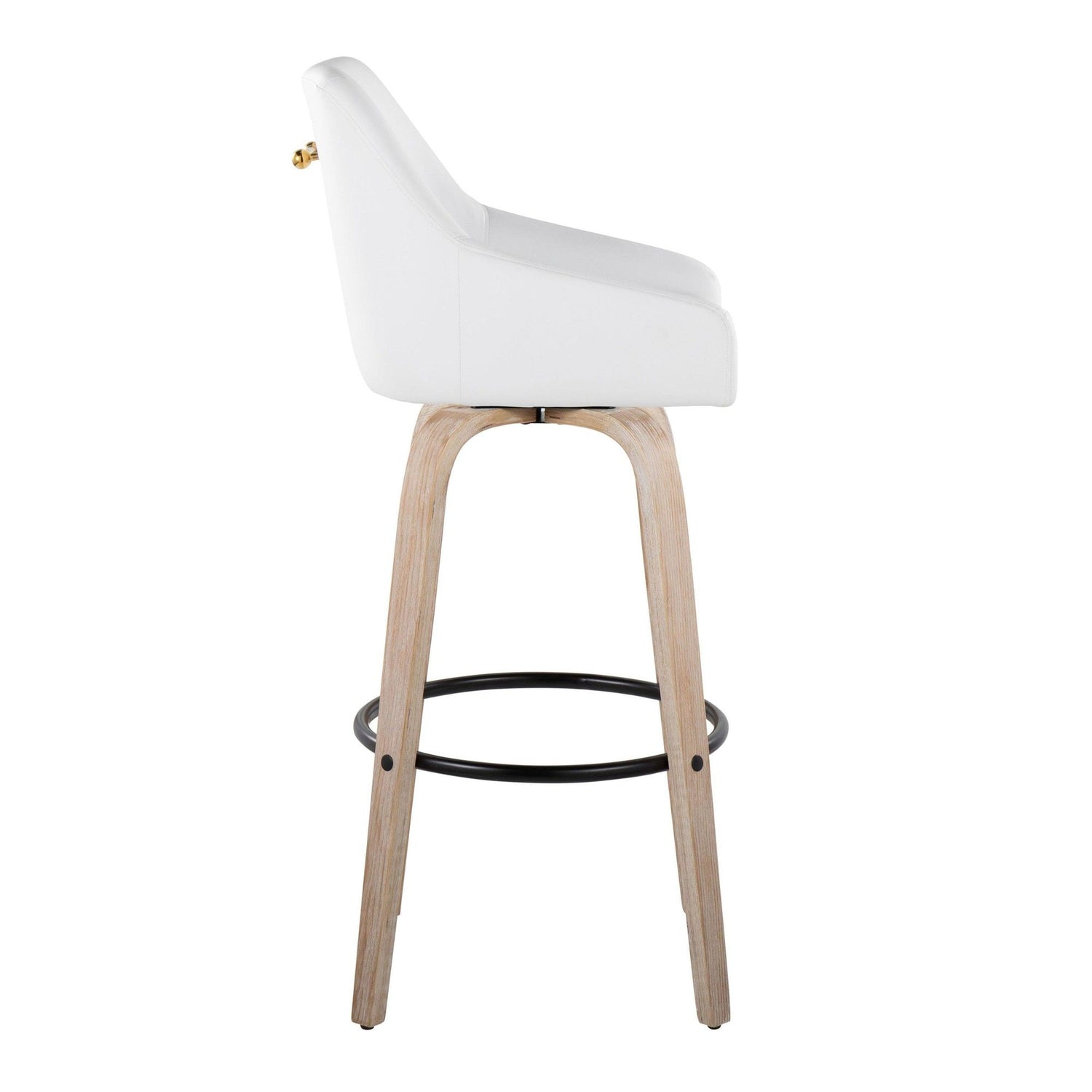 Hannah - Fixed-Height Barstool (Set of 2) - Whitewashed Wood, White Faux Leather, Gold Metal, Black Metal