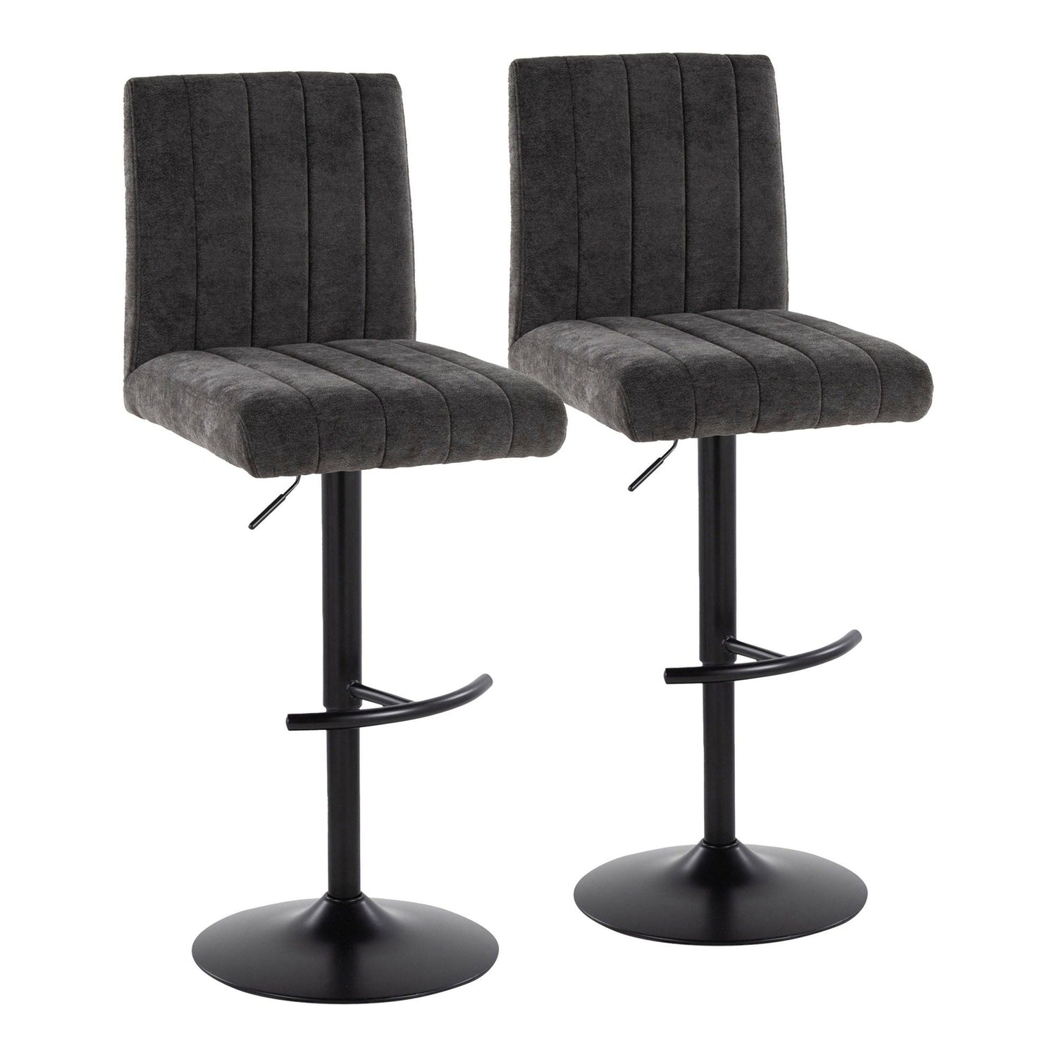 Hannah - Adjustable Barstool With Rounded T Footrest (Set of 2) - Black Metal And Black Fabric