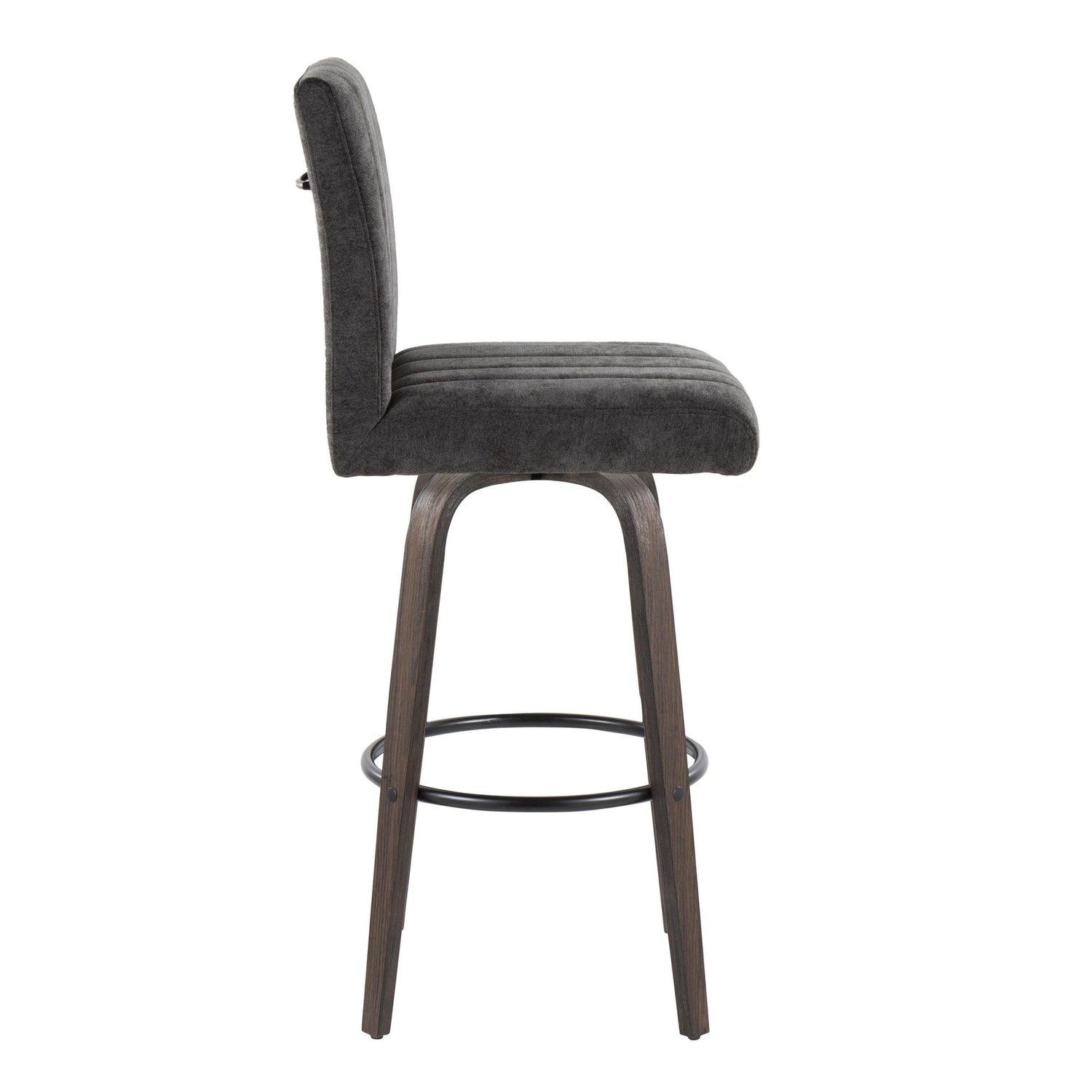 Hannah - 30" Fixed-Height Barstool With Swivel And Round Black Metal Footrest (Set of 2) - Walnut Glazed Wood And Black Fabric