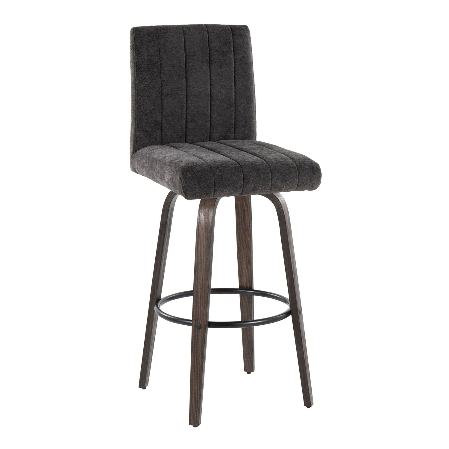 Hannah - 30" Fixed-Height Barstool With Swivel And Round Black Metal Footrest (Set of 2) - Walnut Glazed Wood And Light Gray Fabric
