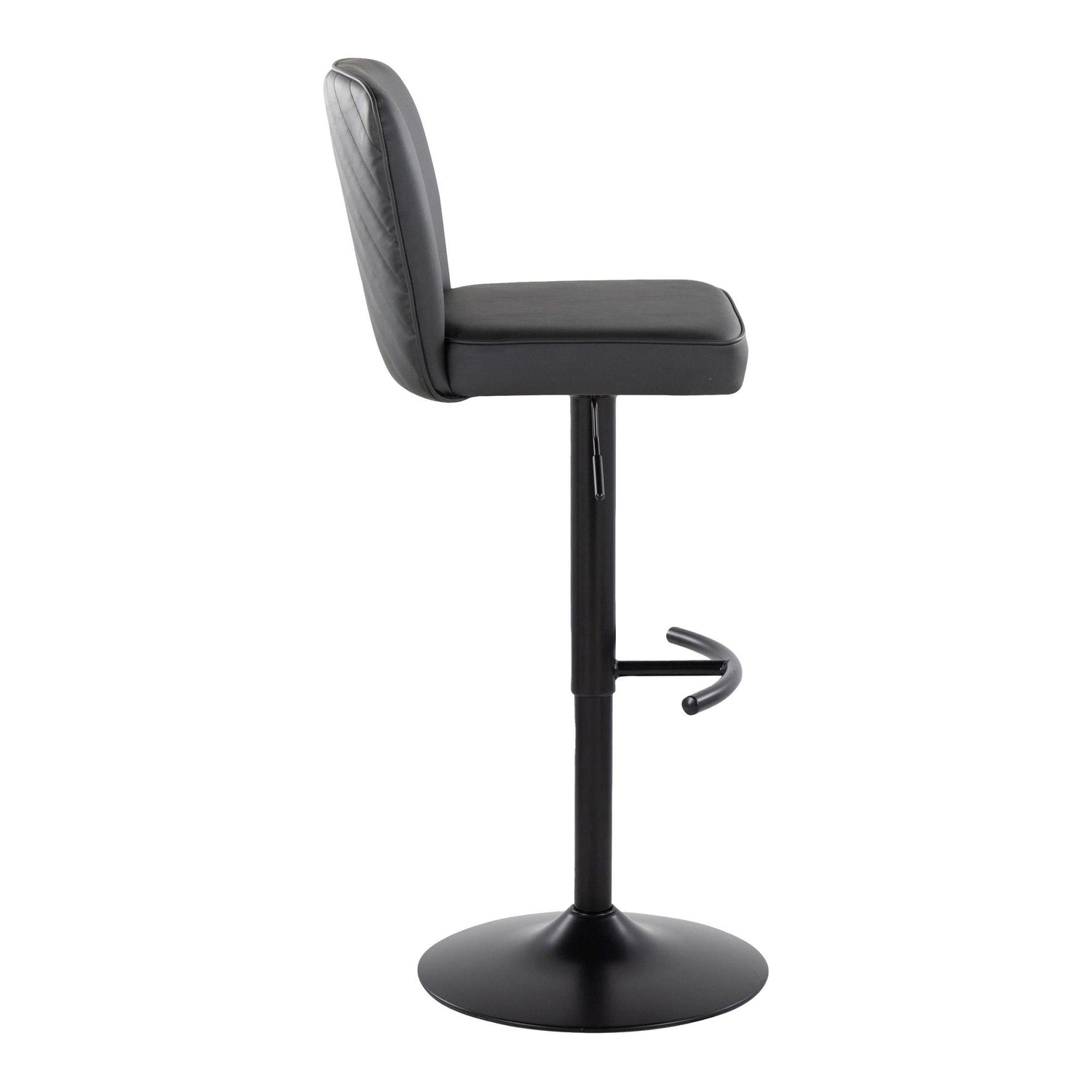 Henry - Adjustable Barstool With Swivel (Set of 2) - Black Metal And Black Faux Leather With Rounded T Footrest