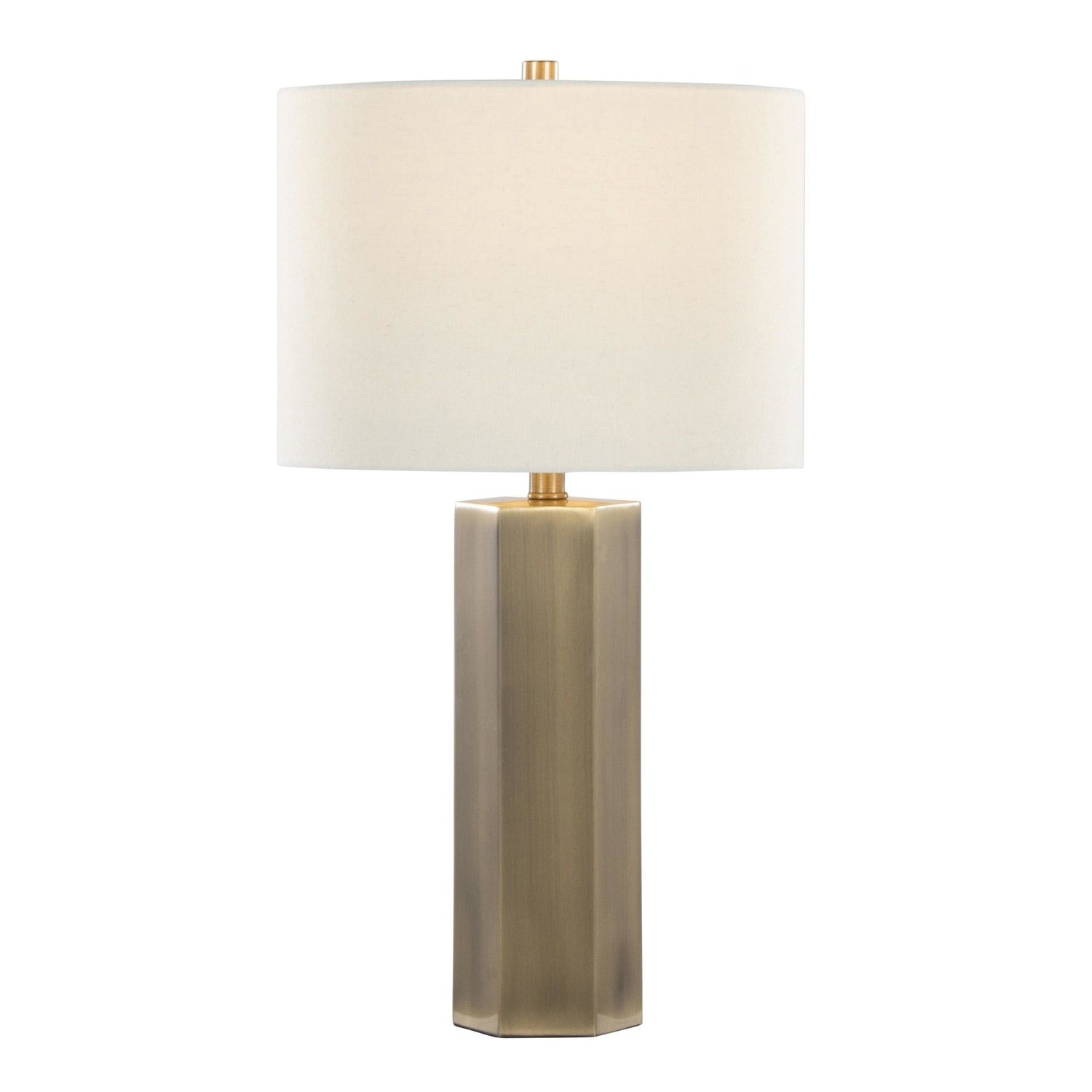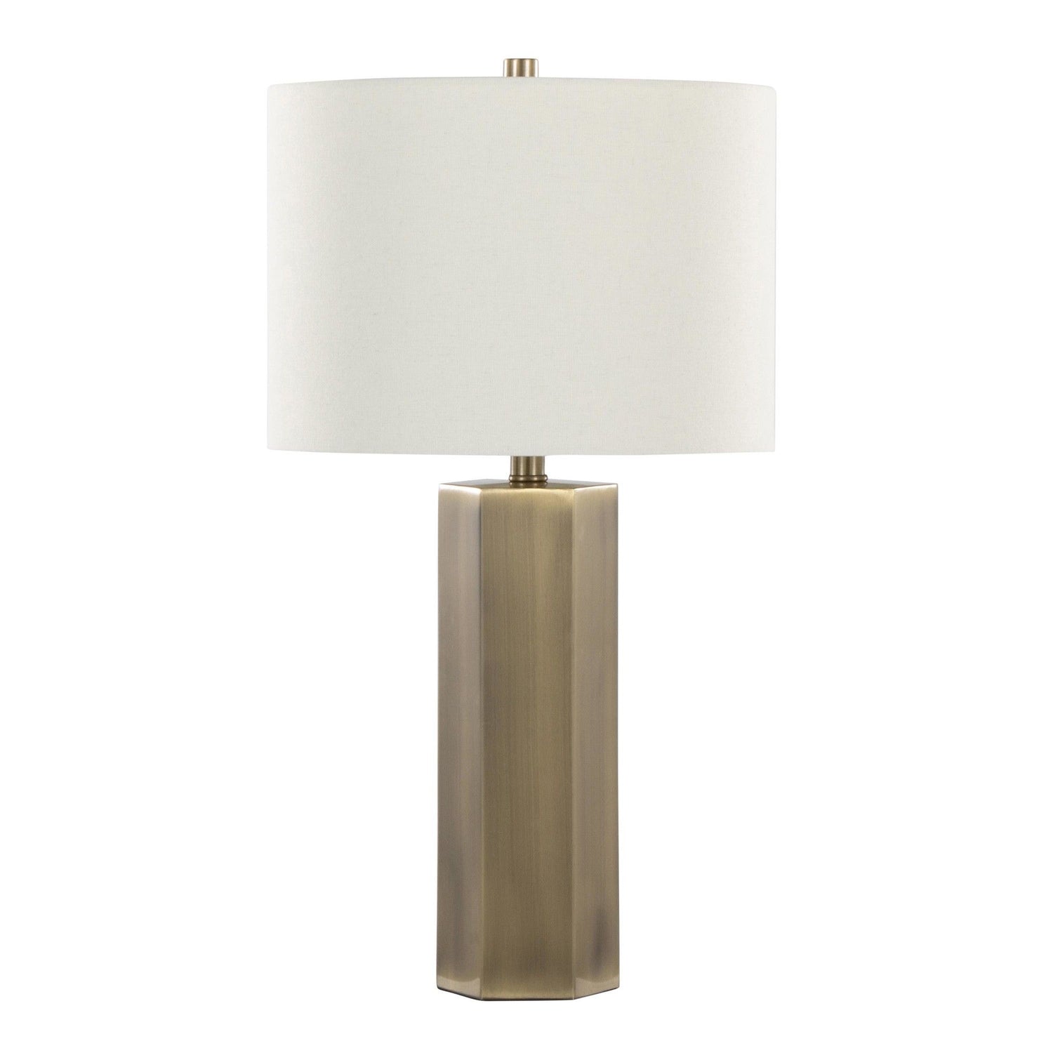 Huit - 26" Metal Table Lamp (Set of 2) - Antique Brass And White Linen