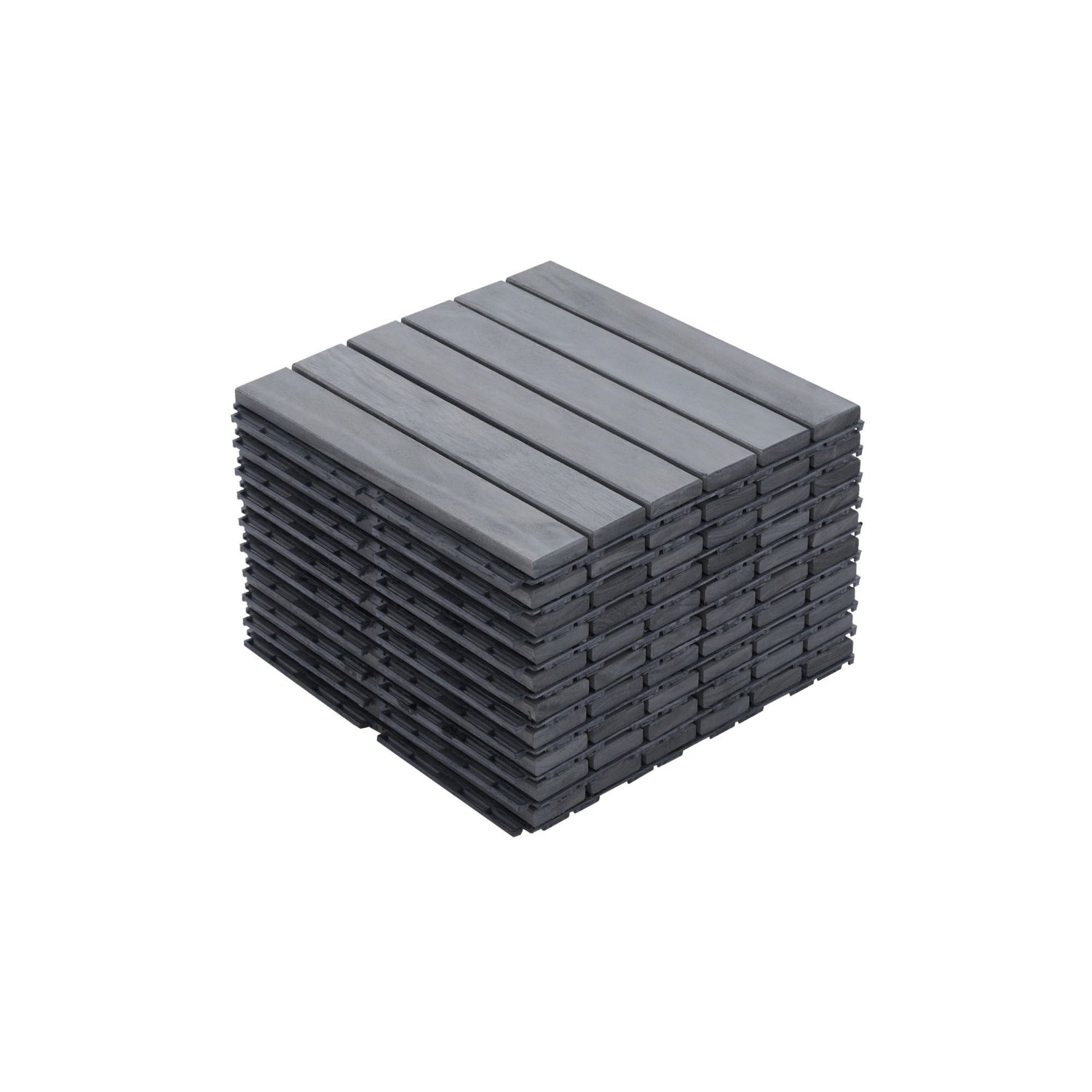 10 Piece Interlocking Deck Tiles Striped Pattern, Square Acacia Hardwood Outdoor Flooring For Patio, Bancony, Pool Side - Light Gray