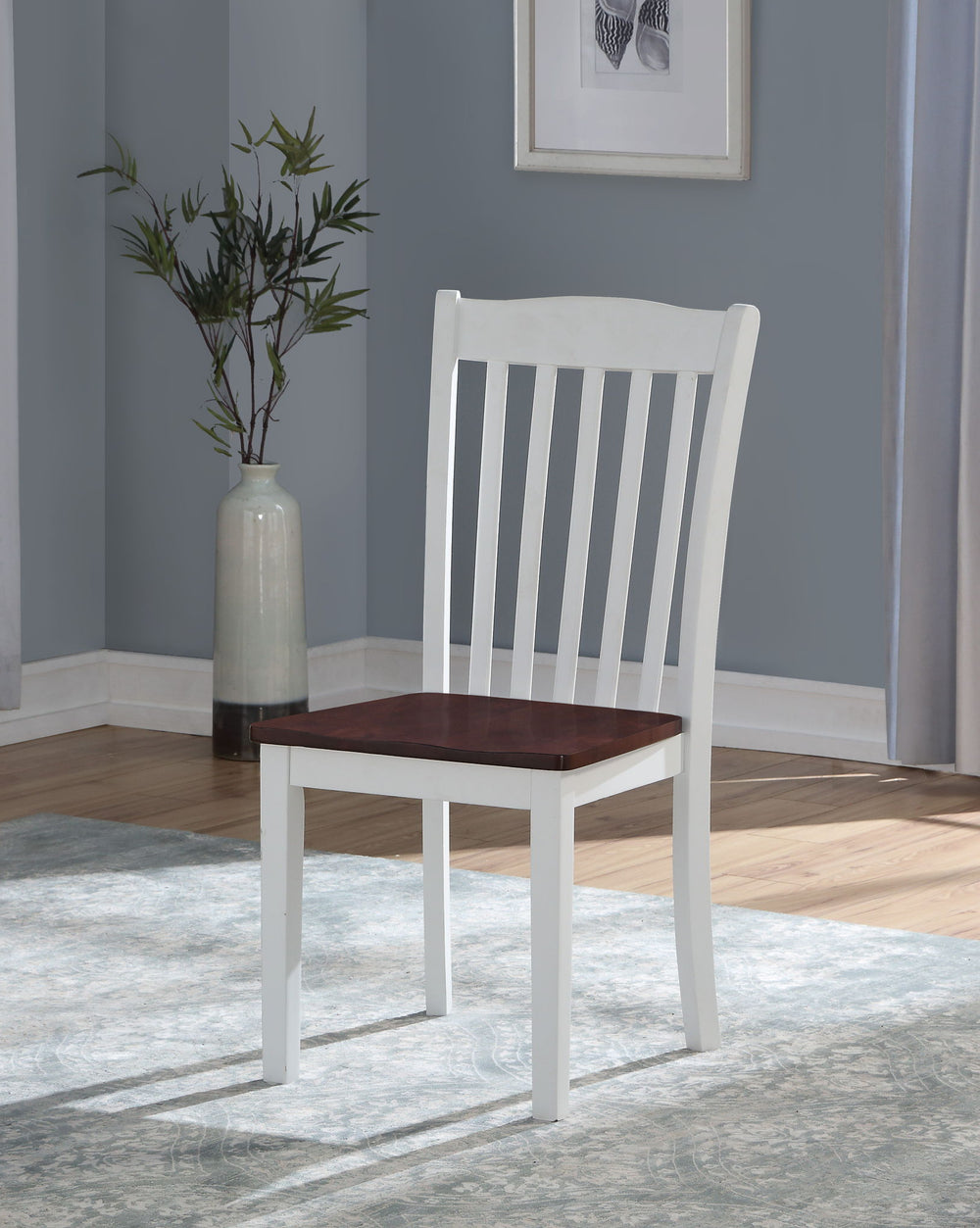 - Comfortable Seating: Side chairs with slatted backs and wooden seats provide comfort and a rustic charm, complementing the table's design.