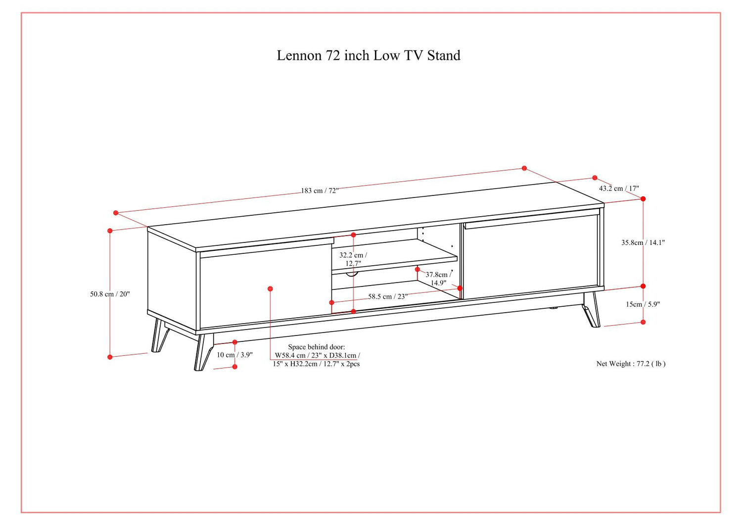 17.0"W x 72.0"D x 20.0"H - 77.2 lb