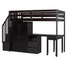 Full Size Loft Bed With Stairs, Bookshelf, Drawers, Desk & Wardrobe, Space Saving Multifunctional Furniture - Espresso