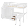 Full Size Loft Bed With Stairs, Bookshelf, Drawers, Desk & Wardrobe, Space Saving Multifunctional Furniture - White