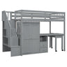 Full Size Loft Bed With Stairs, Bookshelf, Drawers, Desk & Wardrobe, Space Saving Multifunctional Furniture - Gray