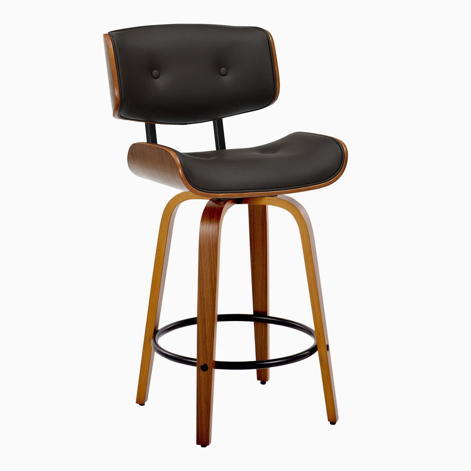 Lombardi - Fixed-Height Counter Stool (Set of 2) - Walnut Wood, Espresso Faux Leather, Black Metal