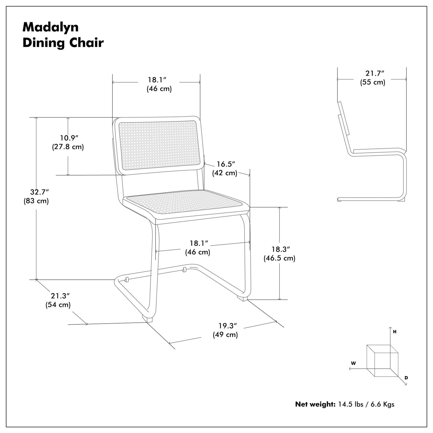- Iconic Design: Set of 2 dining chairs inspired by Marcel Breuer’s Cesca chair, a Bauhaus masterpiece.
