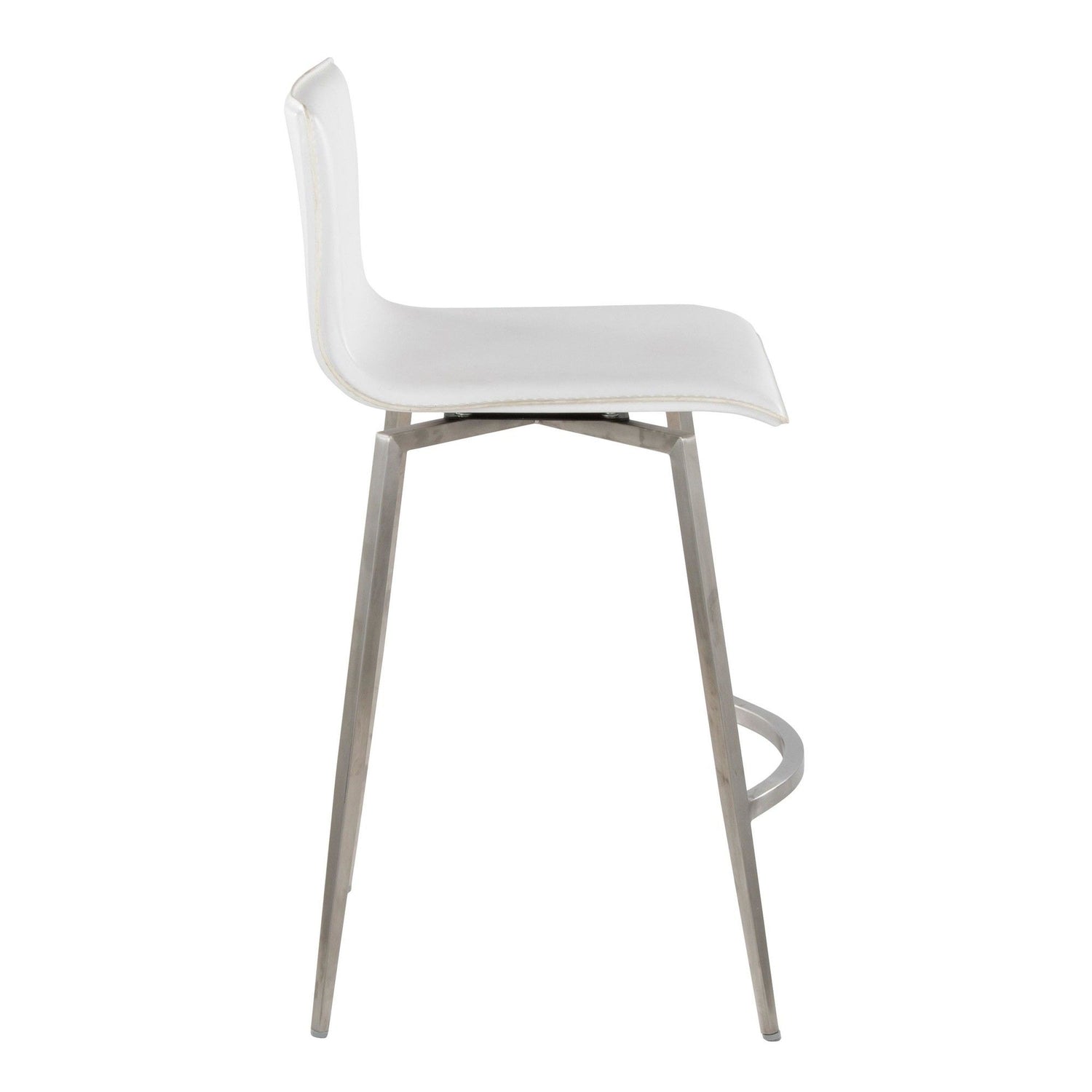 Mara - 26" Upholstered Fixed-Height Counter Stool With Swivel (Set of 2) - Stainless Steel And White Faux Leather