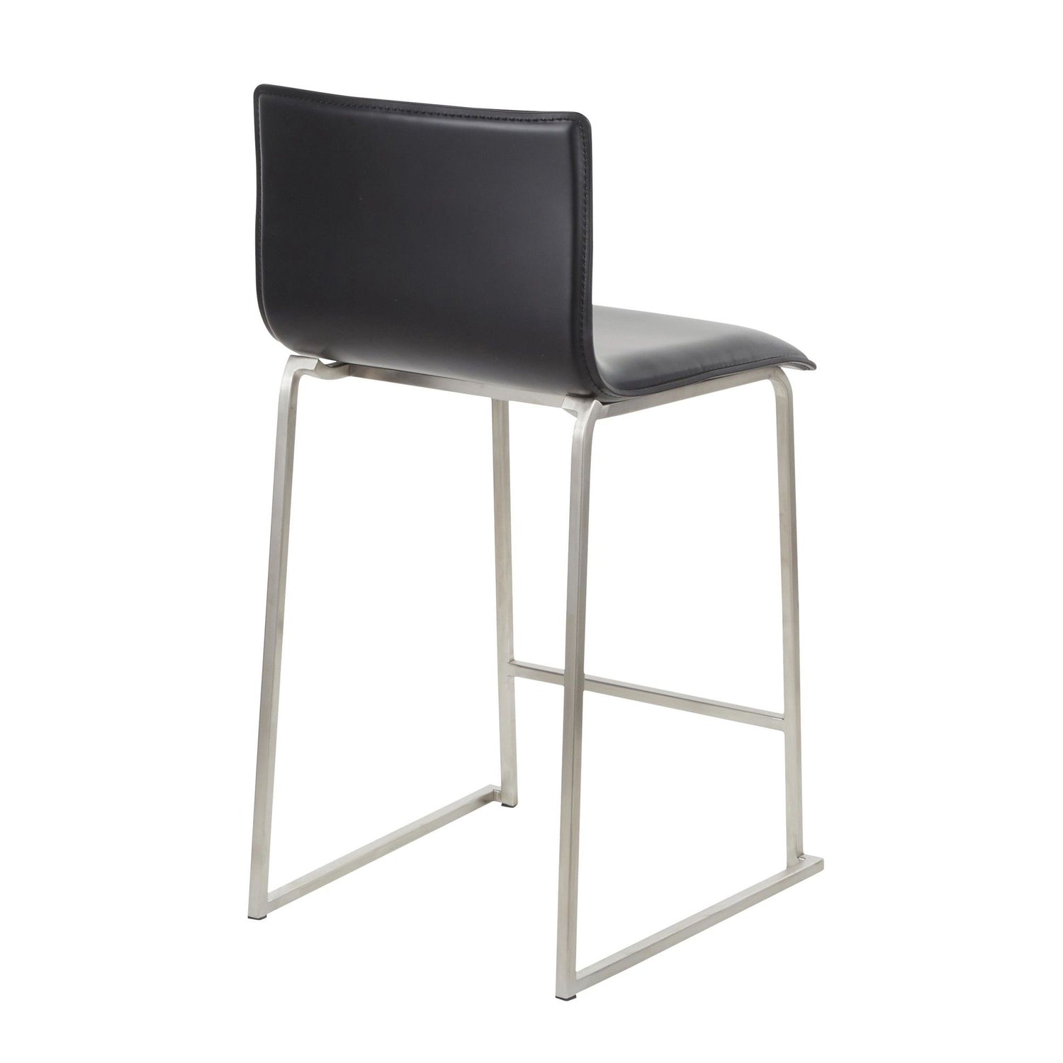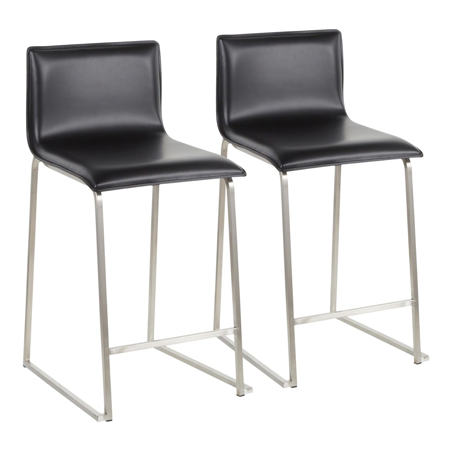 Mara - 26" Counter Stool (Set of 2) - Brushed Stainless Steel, And Black Faux Leather
