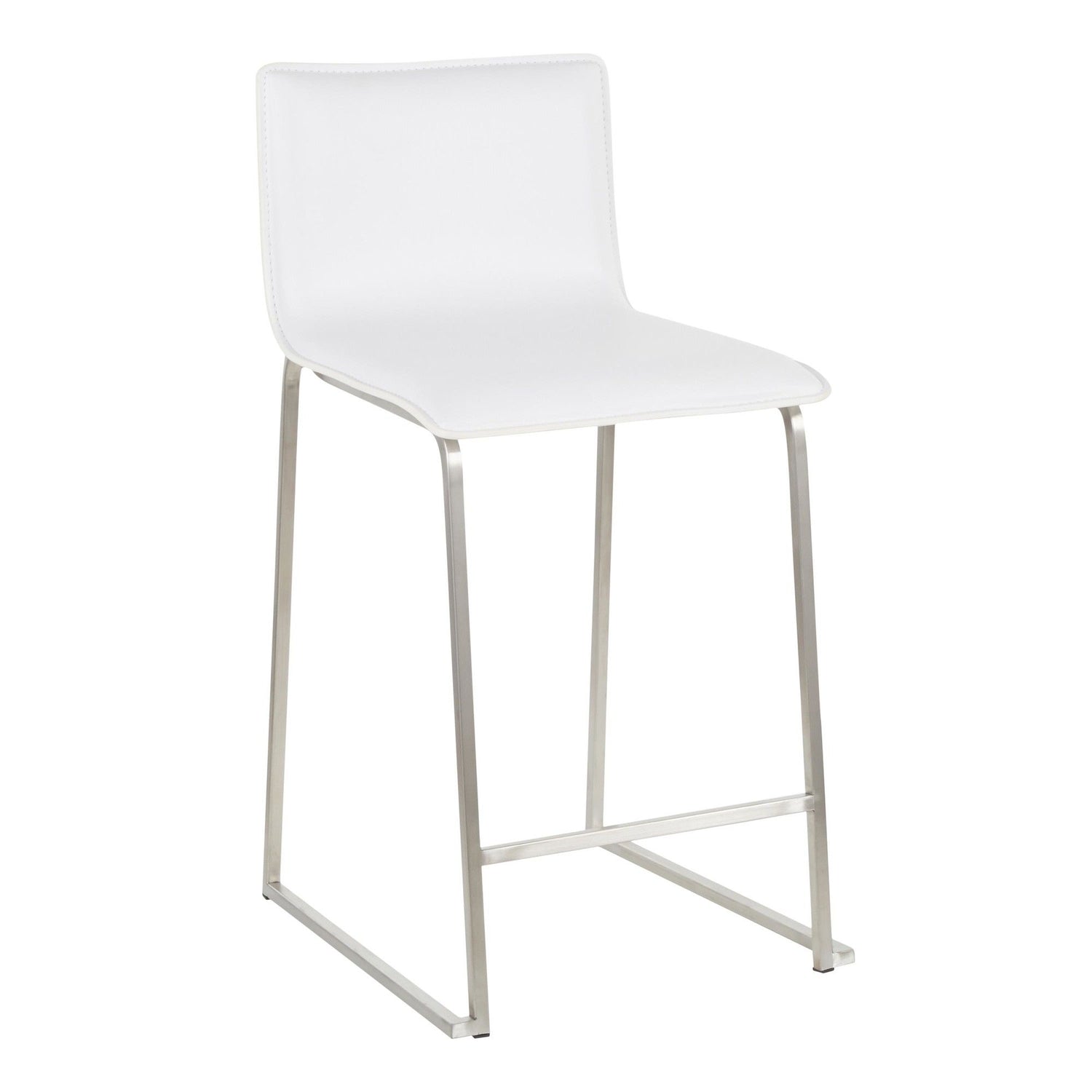Mara - 26" Counter Stool (Set of 2) - Brushed Stainless Steel, And White Faux Leather