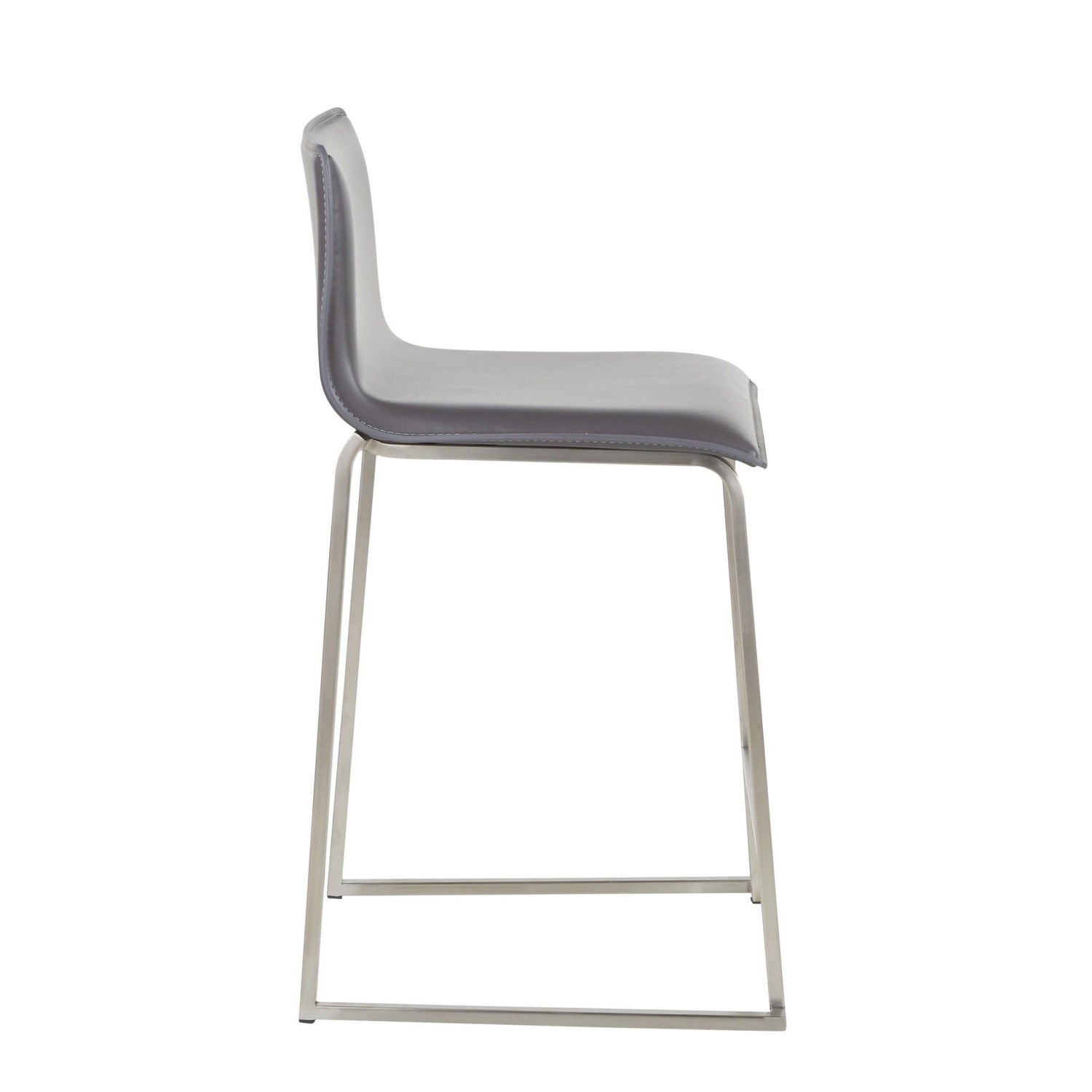 Mara - 26" Counter Stool (Set of 2) - Brushed Stainless Steel, And Gray Faux Leather