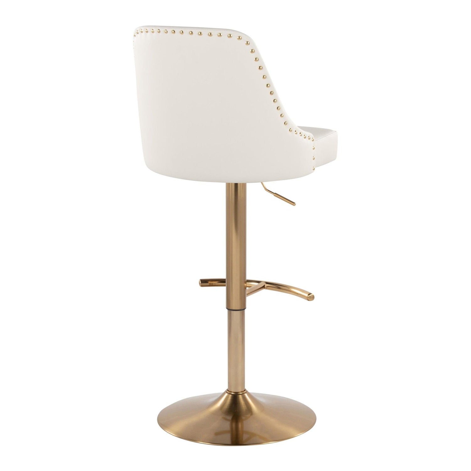 Marcel - Adjustable Barstool With Rounded T Footrest (Set of 2) - Gold Metal And White Faux Leather With Gold Nailhead Trim