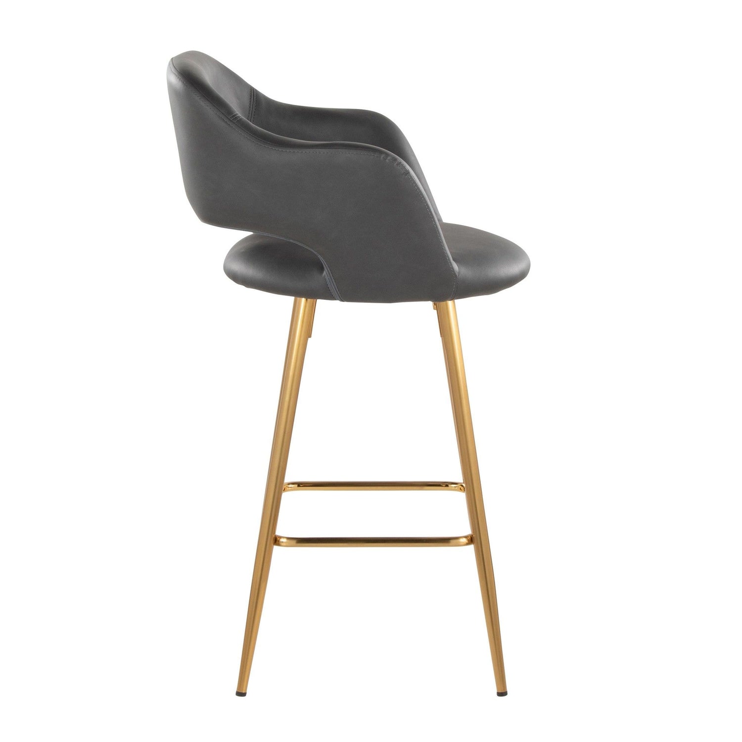 Margarite - 26" Fixed-Height Counter Stool (Set of 2) - Gold Metal And Gray Faux Leather With Square Gold Metal Footrest