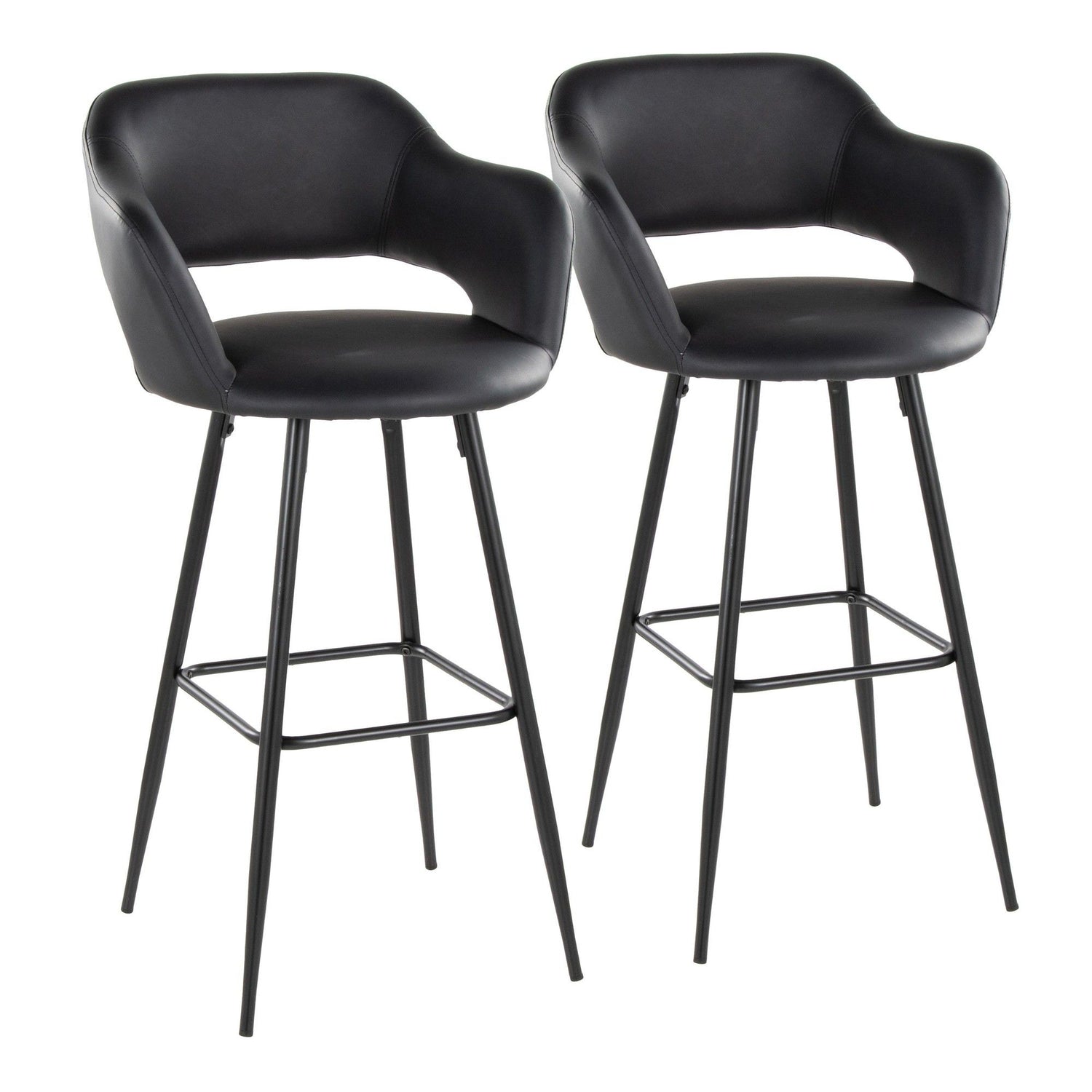 Margarite - 30" Fixed-Height Barstool (Set of 2) - Black Metal And Black Faux Leather With Square Black Metal Footrest