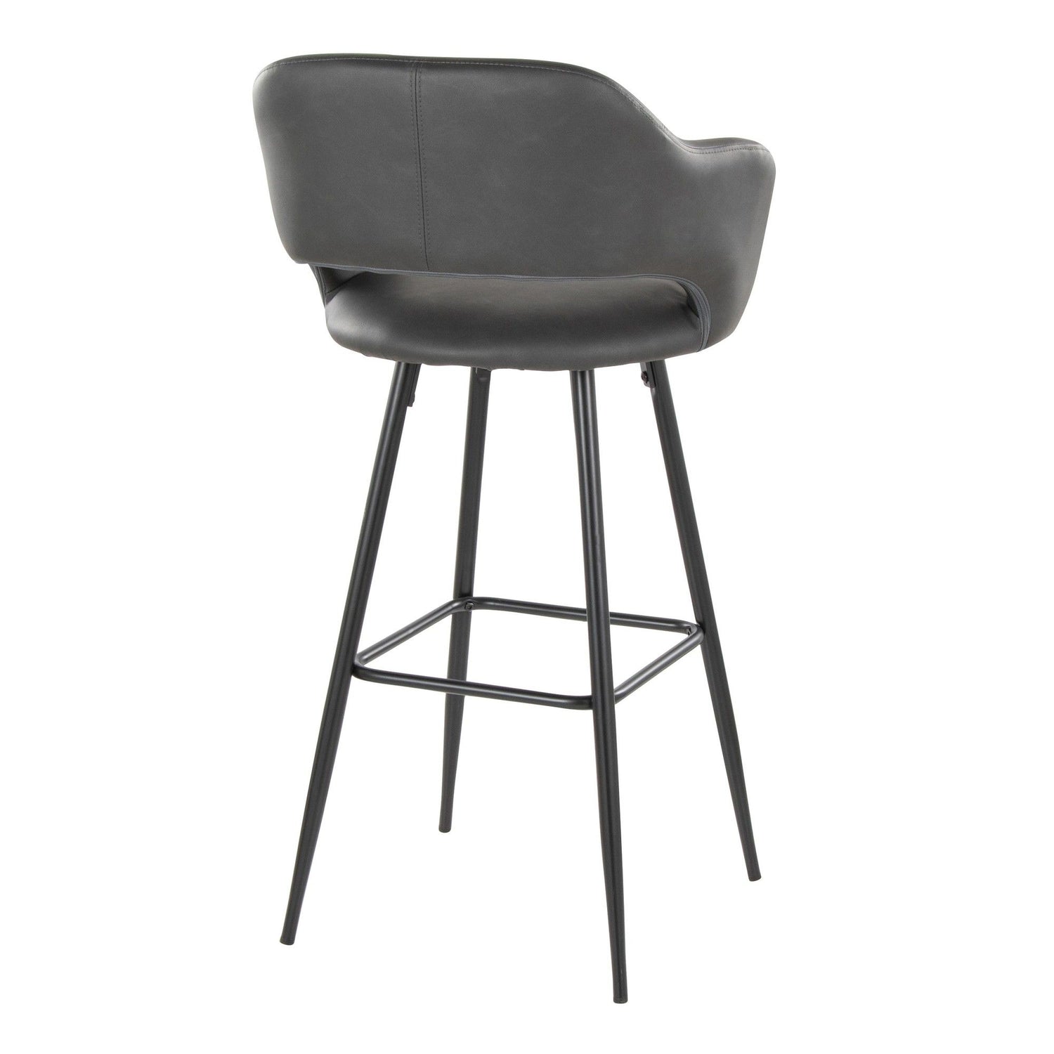 Margarite - 30" Fixed-Height Barstool (Set of 2) - Black Metal And Gray Faux Leather With Square Black Metal Footrest