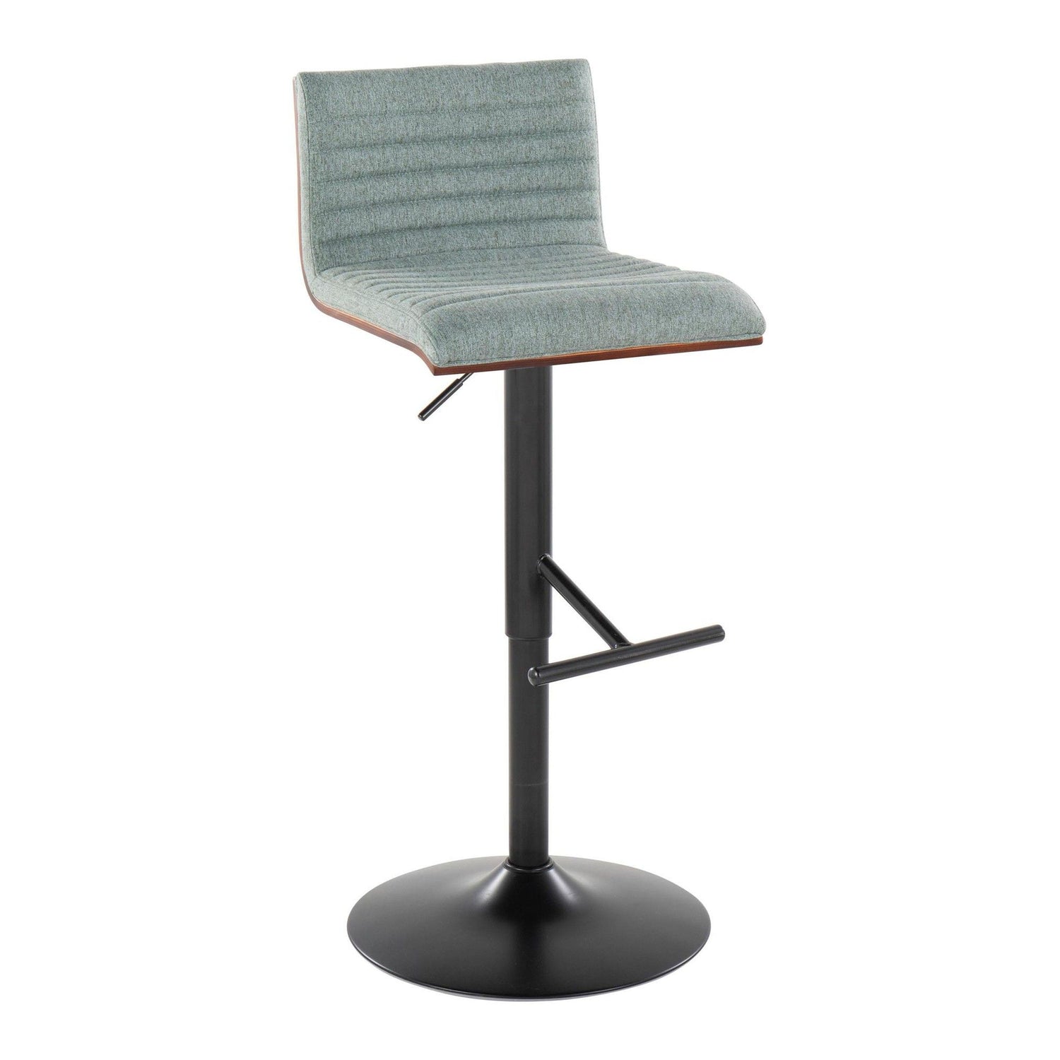 Mason - Adjustable Barstool With Swivel (Set of 2) - Black Metal, Walnut Wood And Green Fabric With Straight T Footrest