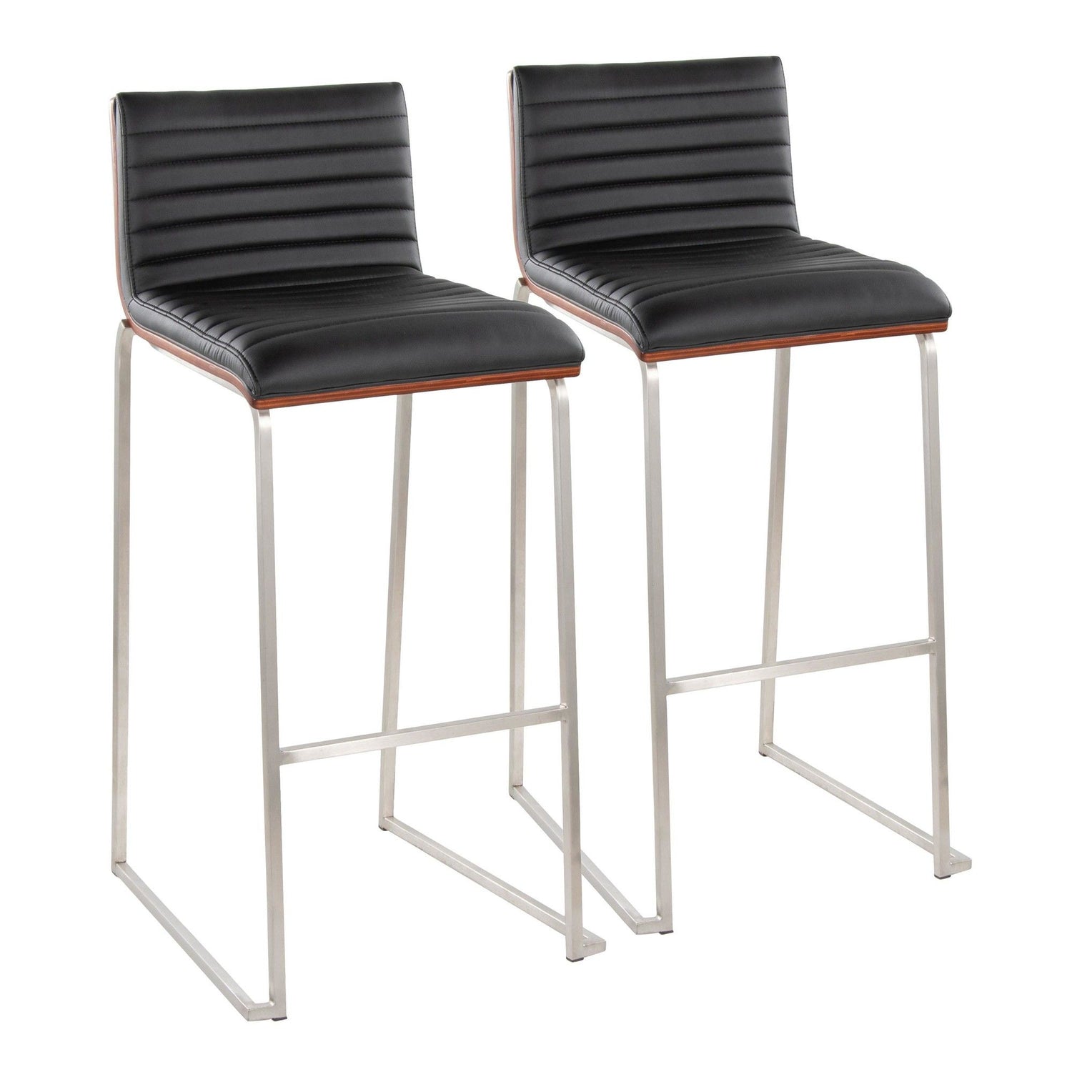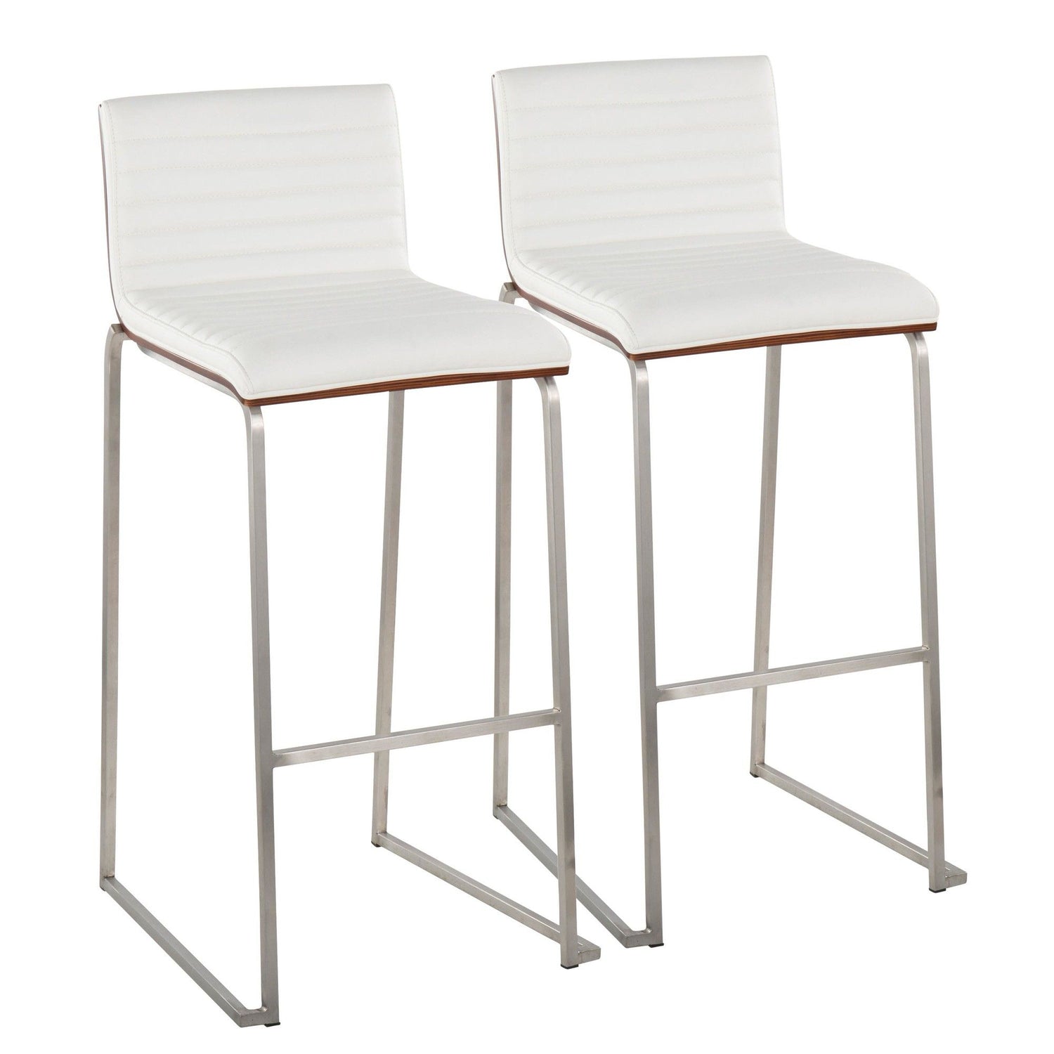 Mason Mara - 30" Fixed-Height Barstool (Set of 2) - Walnut And White
